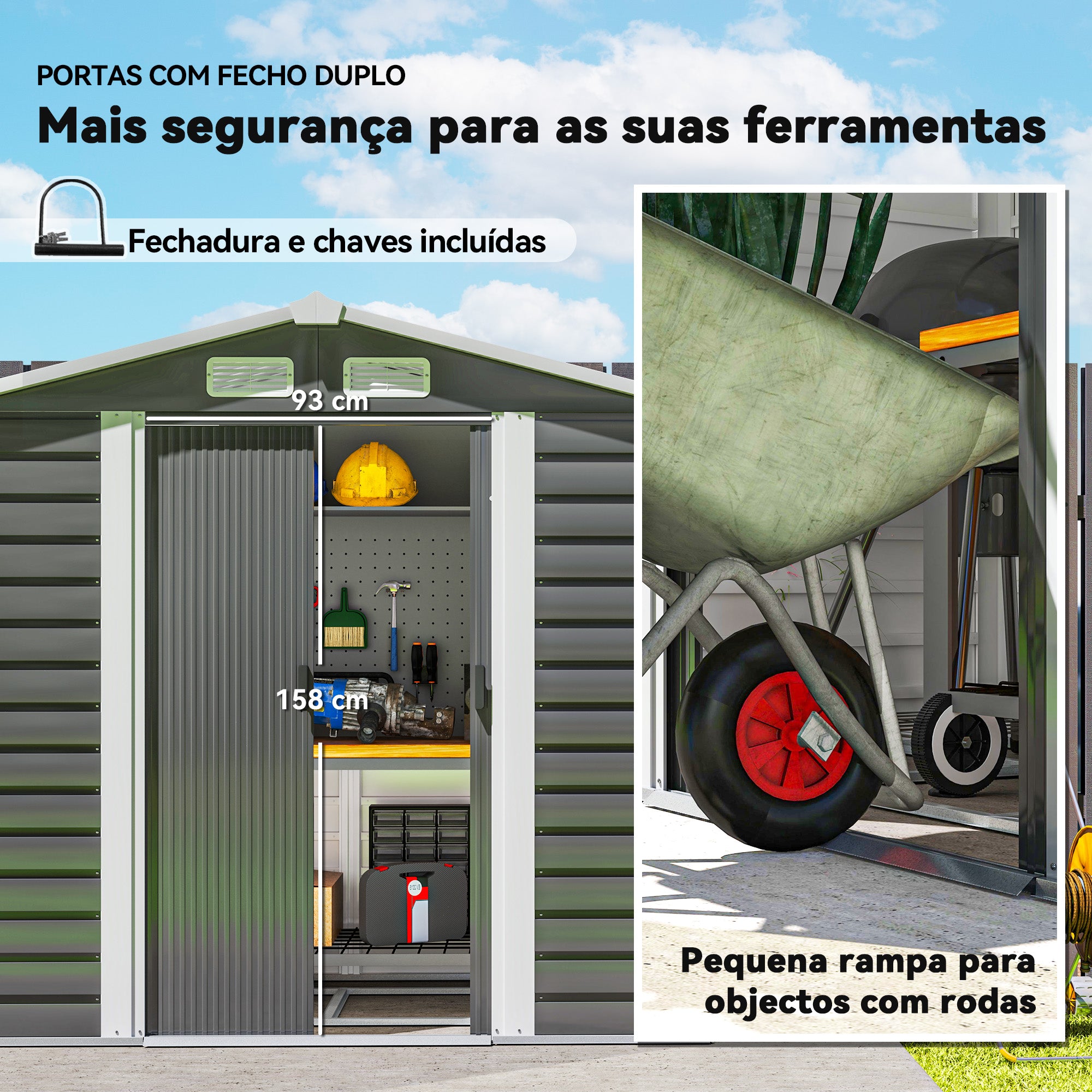 O abrigo de jardim Outsunny conta com quatro respiradores para melhorar a ventilação, portas deslizantes duplas e é uma opção prática e durável para o seu espaço exterior.