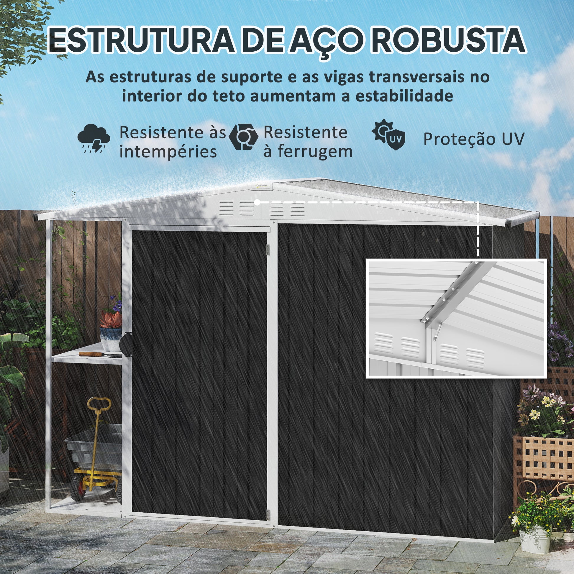 Abrigo de Jardim 2,7m² Cinza Escuro 245x117x180 cm com Prateleira e Ventilação