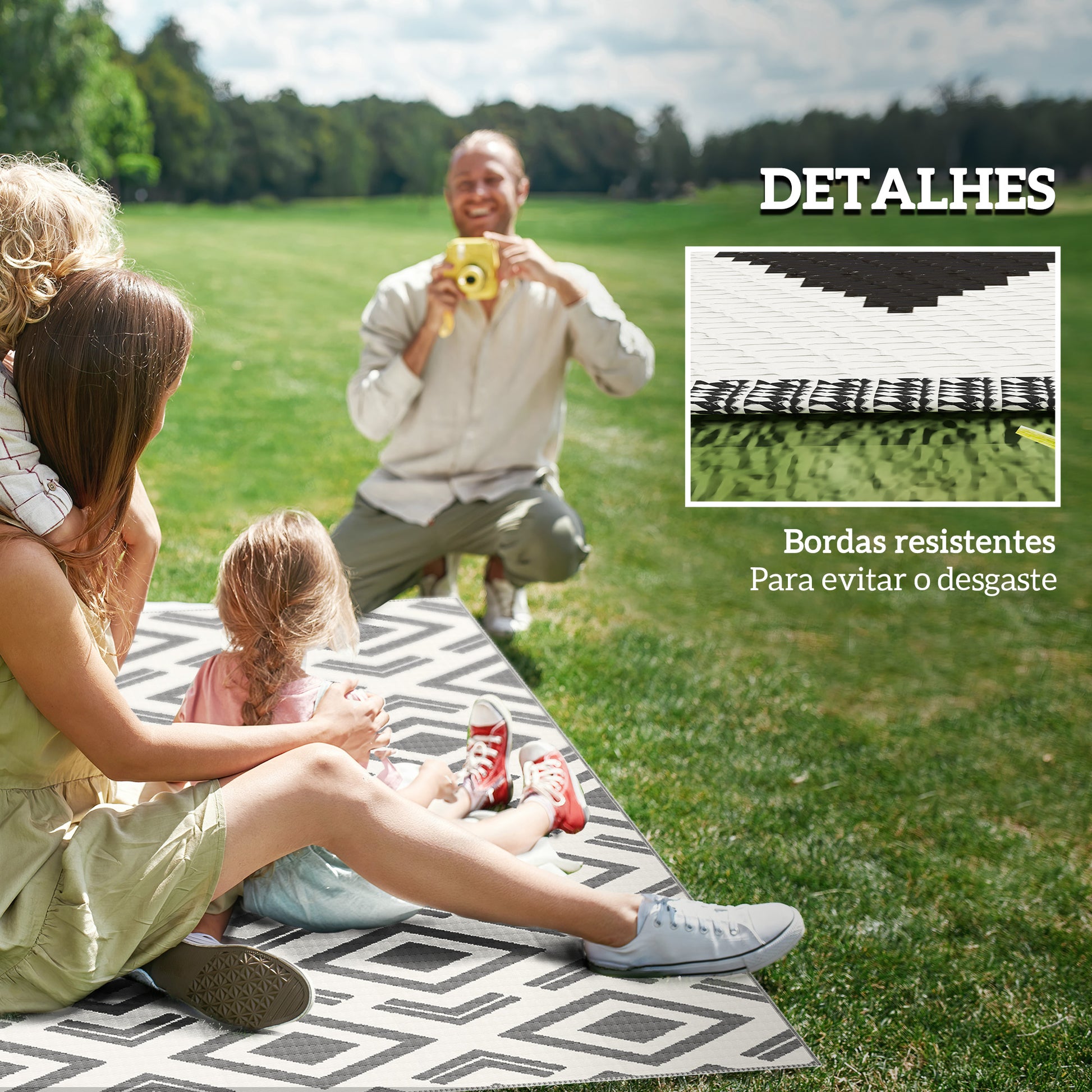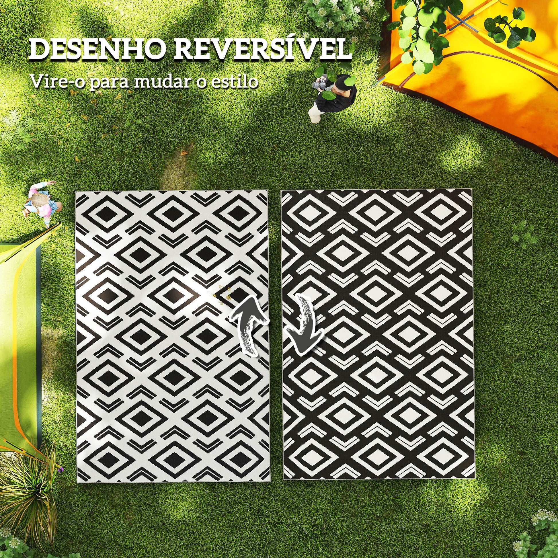 Adicione um toque decorativo elegante e versátil aos seus ambientes externos com este tapete resistente e de fácil manutenção. Aproveite a praticidade e estilo que este tapete reversível oferece!