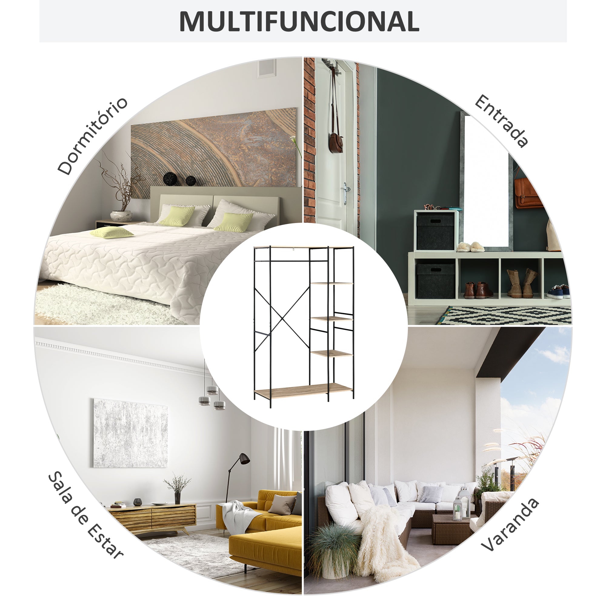 - Benefícios: Amplo espaço de armazenamento com varão para pendurar roupas longas, 3 prateleiras laterais e uma prateleira na parte inferior