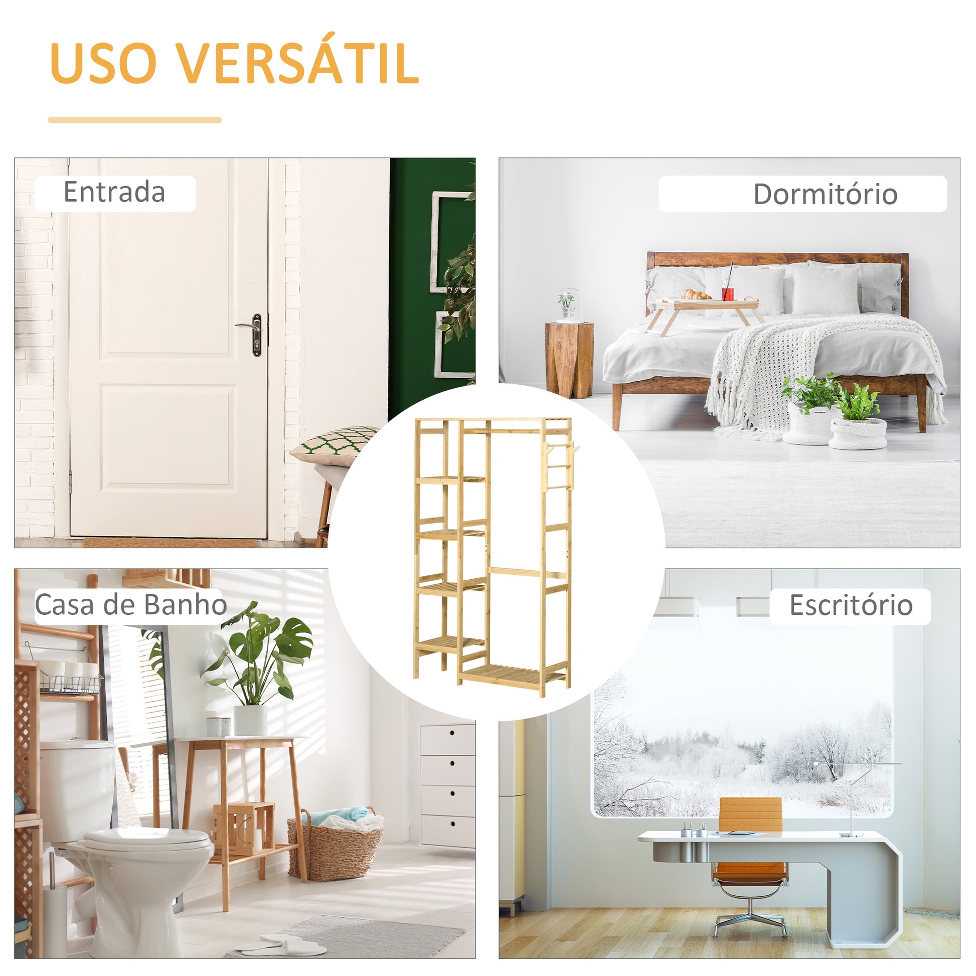 Transforme o seu espaço com este suporte de cabides funcional e elegante, que combina praticidade e estilo.