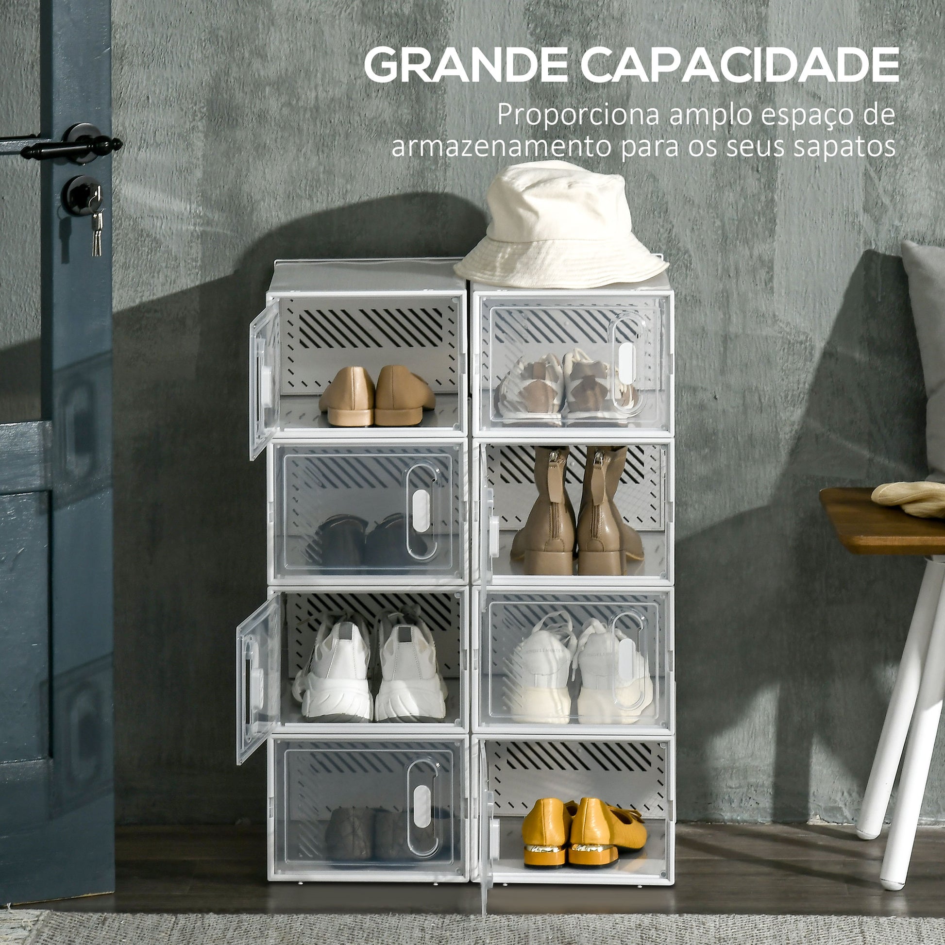 Organize seus sapatos de forma eficiente com esta sapateira modular transparente de 8 cubos, ideal para entrada, corredor e dormitório.