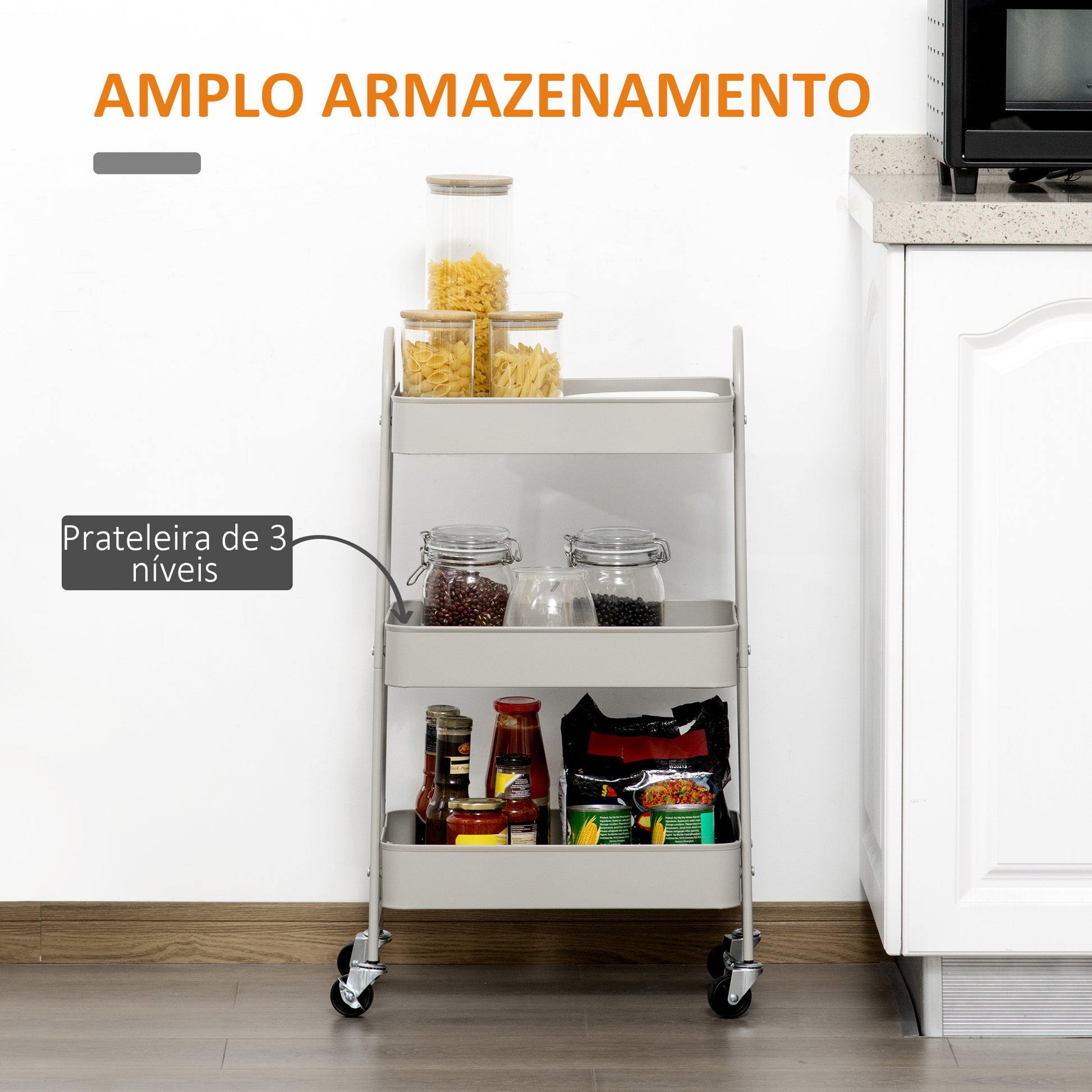 Carrinho de Cozinha com Rodas – 45x31x79,4cm – Cinza Claro – Aço