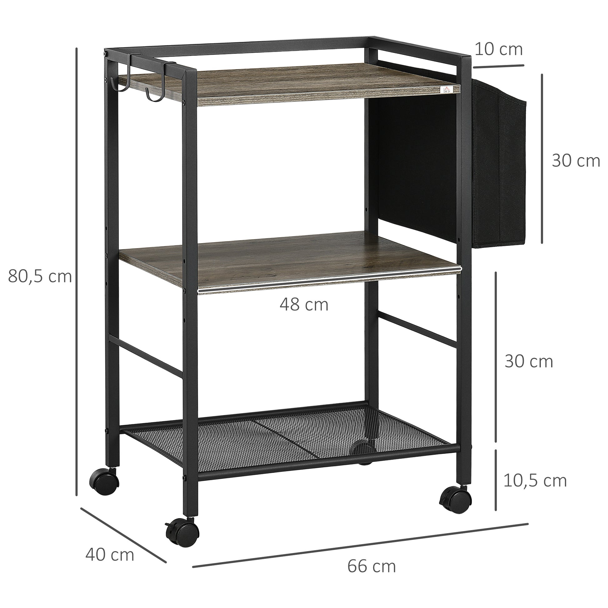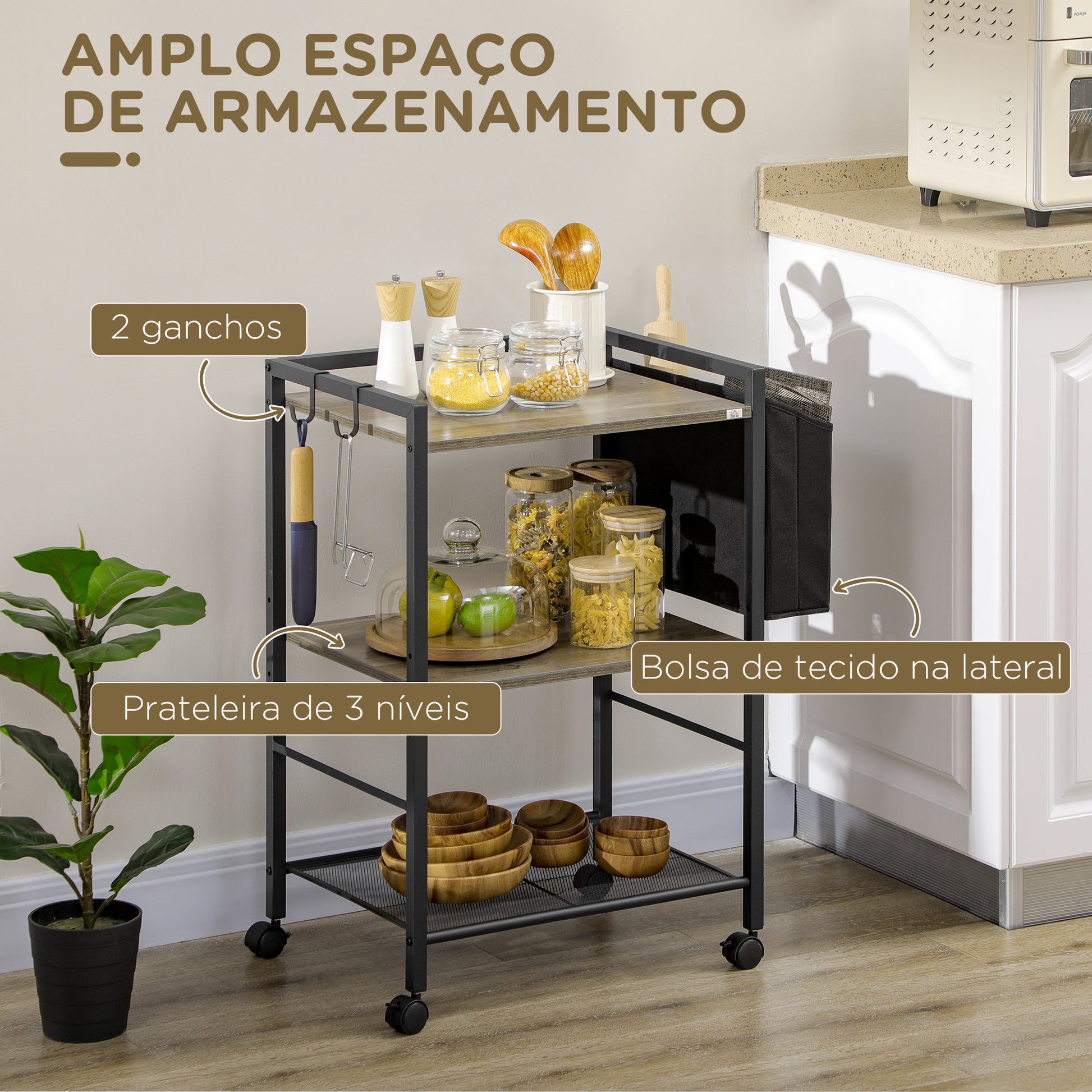 Carrinho Auxiliar – 66x40x80,5cm – Preto e Cinza – Melamina de madeira e aço
