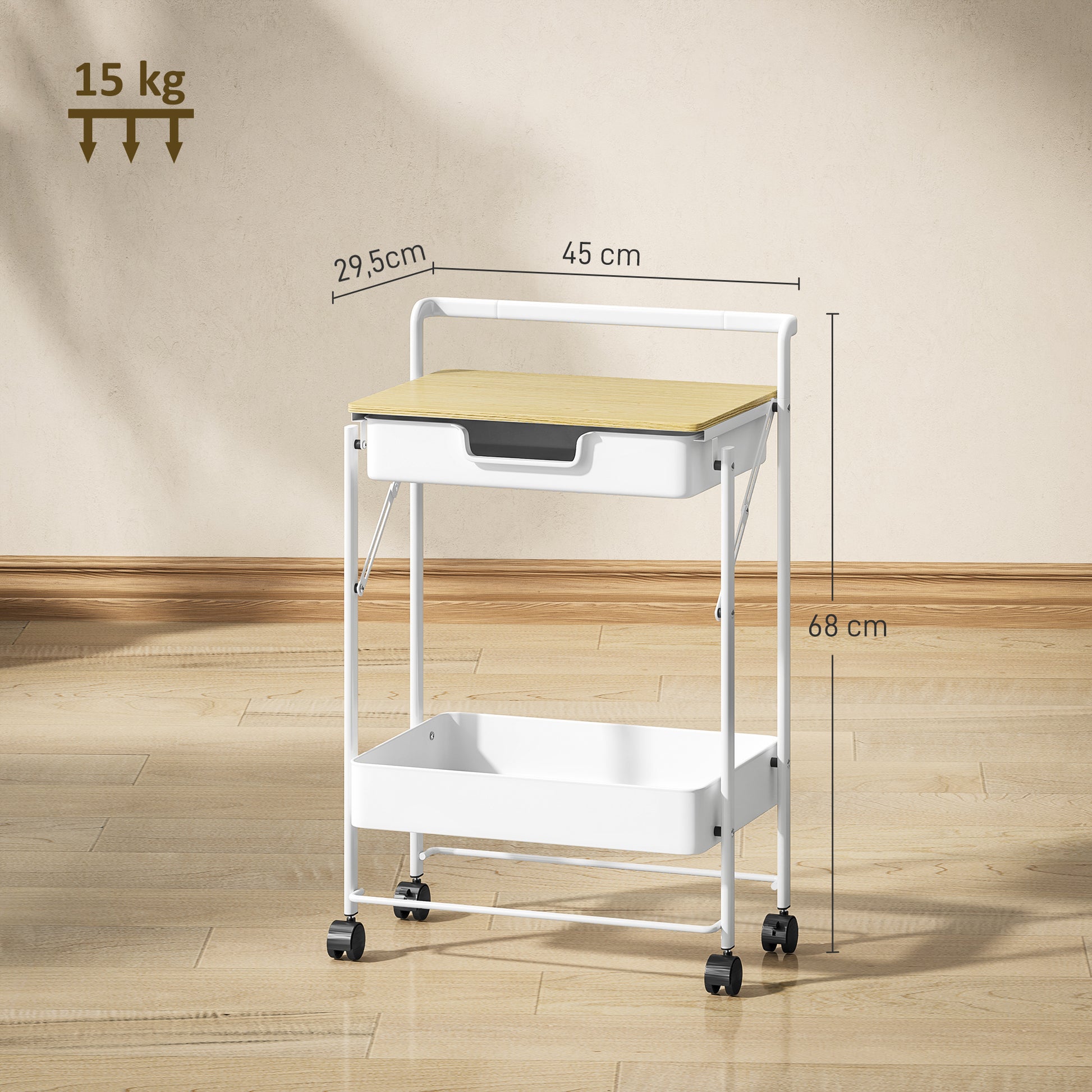 Carrinho Auxiliar de Cozinha 2 Níveis 45x29,5x68 cm Branco