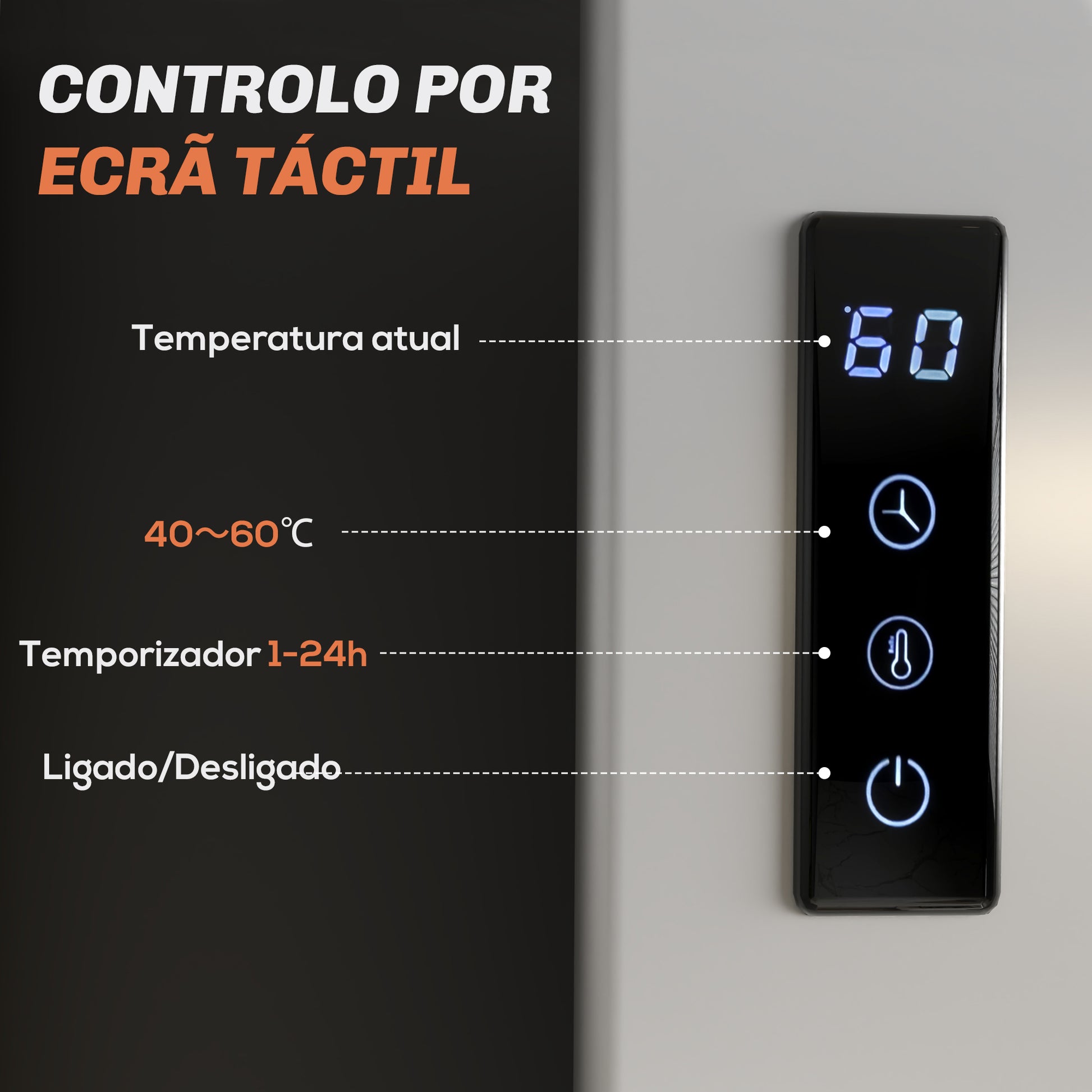 - Benefícios: Aquecimento rápido, controlo inteligente via app Tuya, temporizador programável, baixo consumo