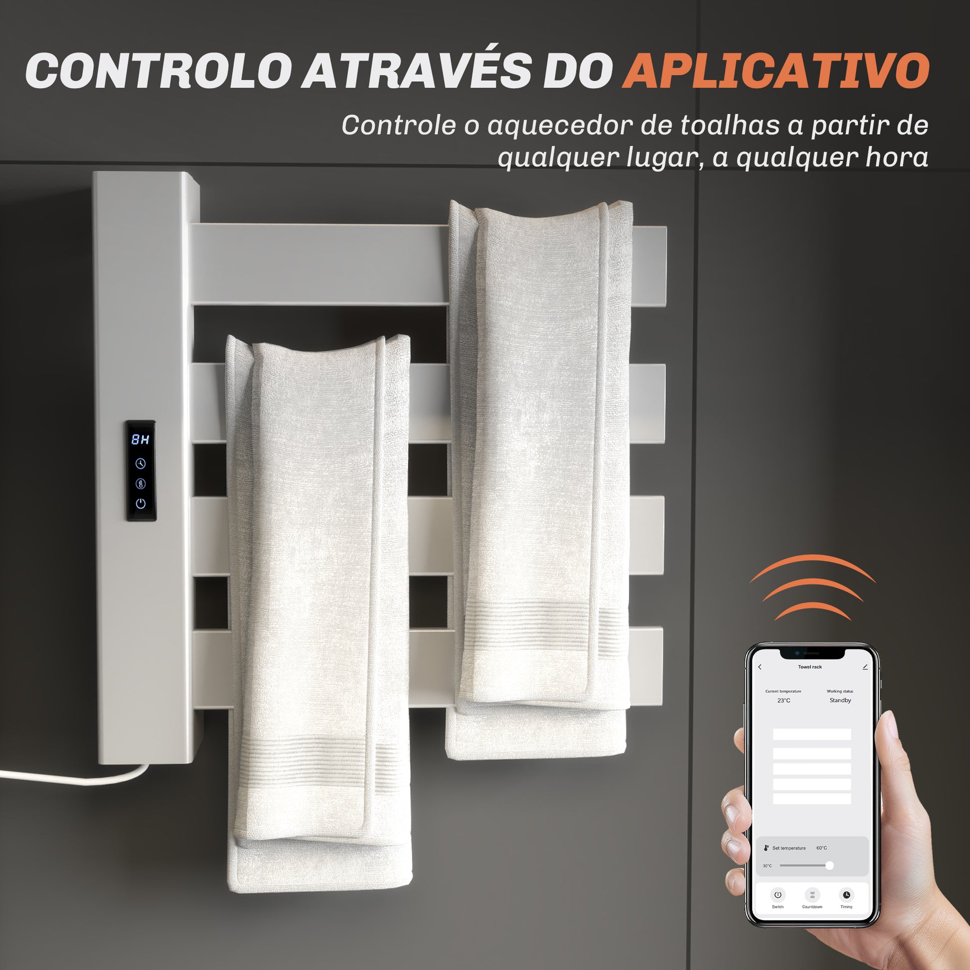 Desfrute de toalhas quentes e secas sempre que precisar com este toalheiro elétrico de parede. Fácil de instalar e de utilizar, é a escolha elegante e funcional para a sua casa de banho.