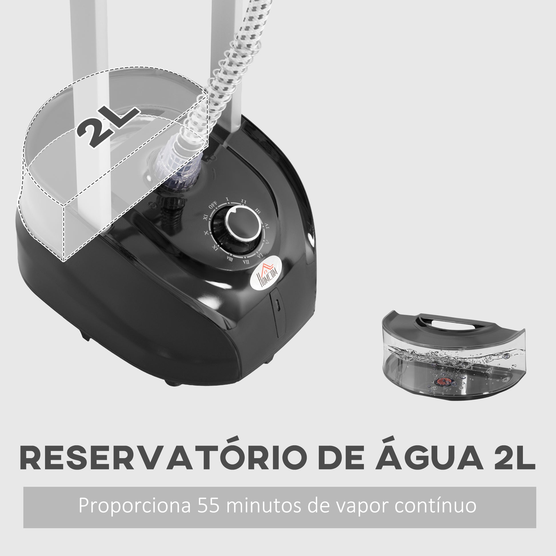 - Outras Especificações: Depósito removível de 2 litros, depósito transparente para fácil controle do nível de água, inclui suporte para pendurar as roupas e uma pequena tábua para passá-las confortavelmente.