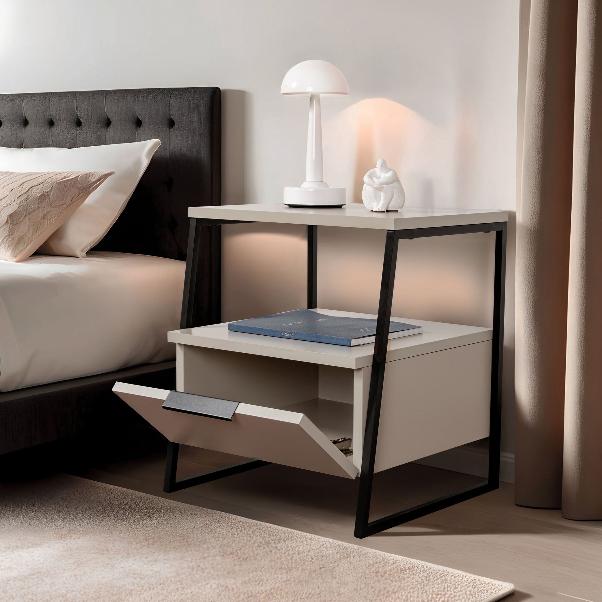 Mesa de cabeceira – 45 cm de largura, 50 cm de altura, 40 cm de profundidade – Arenito – Painel de partículas revestido a melamina