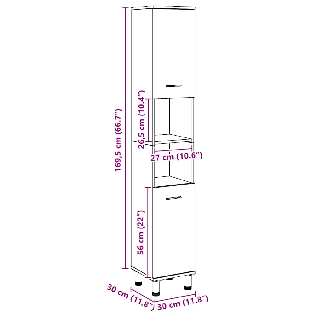 Armário WC 30x30x179 cm derivados de madeira carvalho artisiano