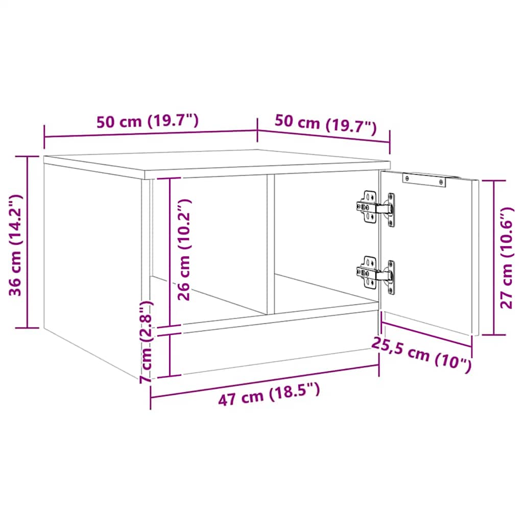 Mesa de centro 50x50x36 cm deriv. madeira carvalho artisiano