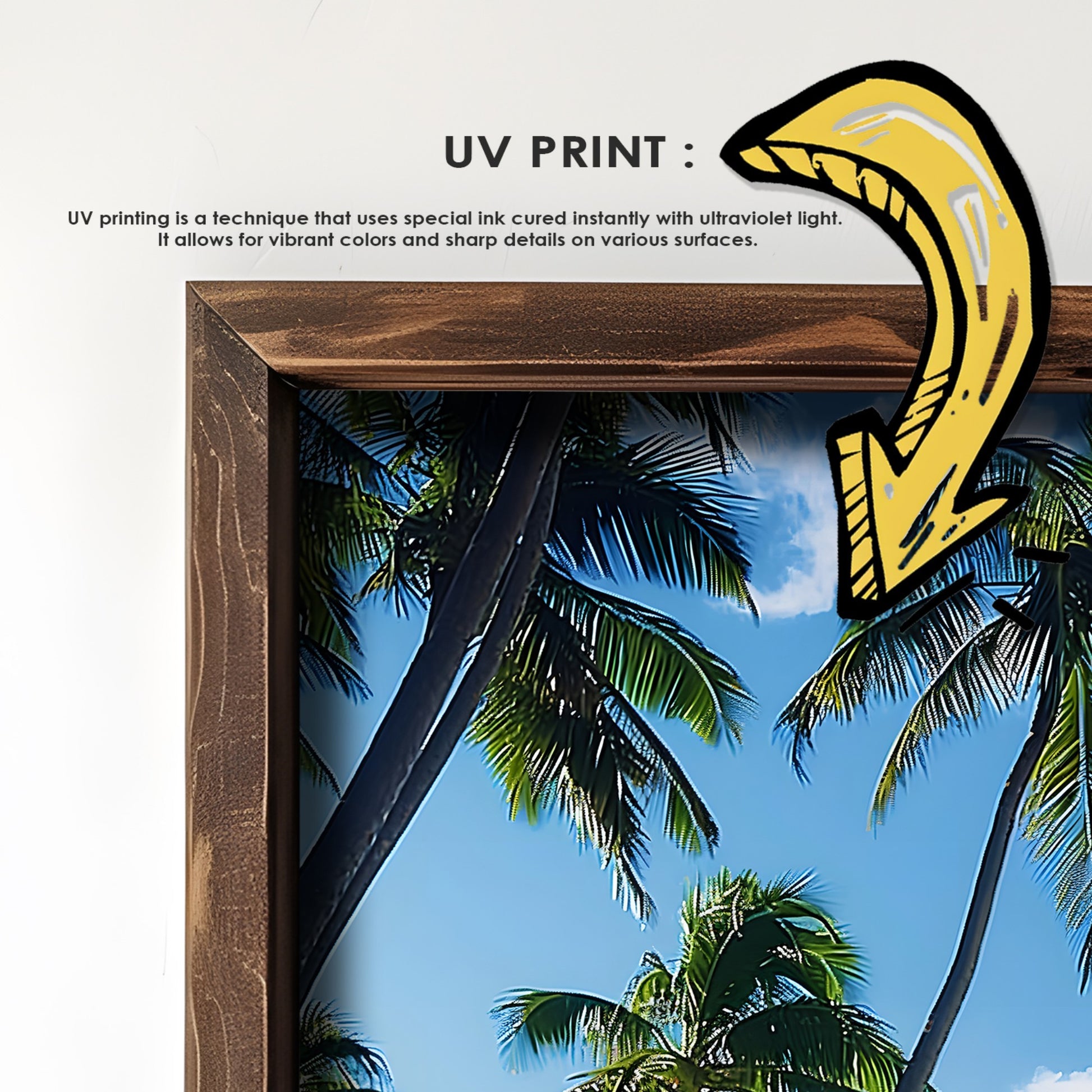 Com apenas 1,3 kg, este quadro oferece a combinação perfeita entre leveza e robustez. A tecnologia de impressão UV assegura cores intensas e resistência ao tempo, enquanto a moldura em pinho confere um toque natural e elegante.
