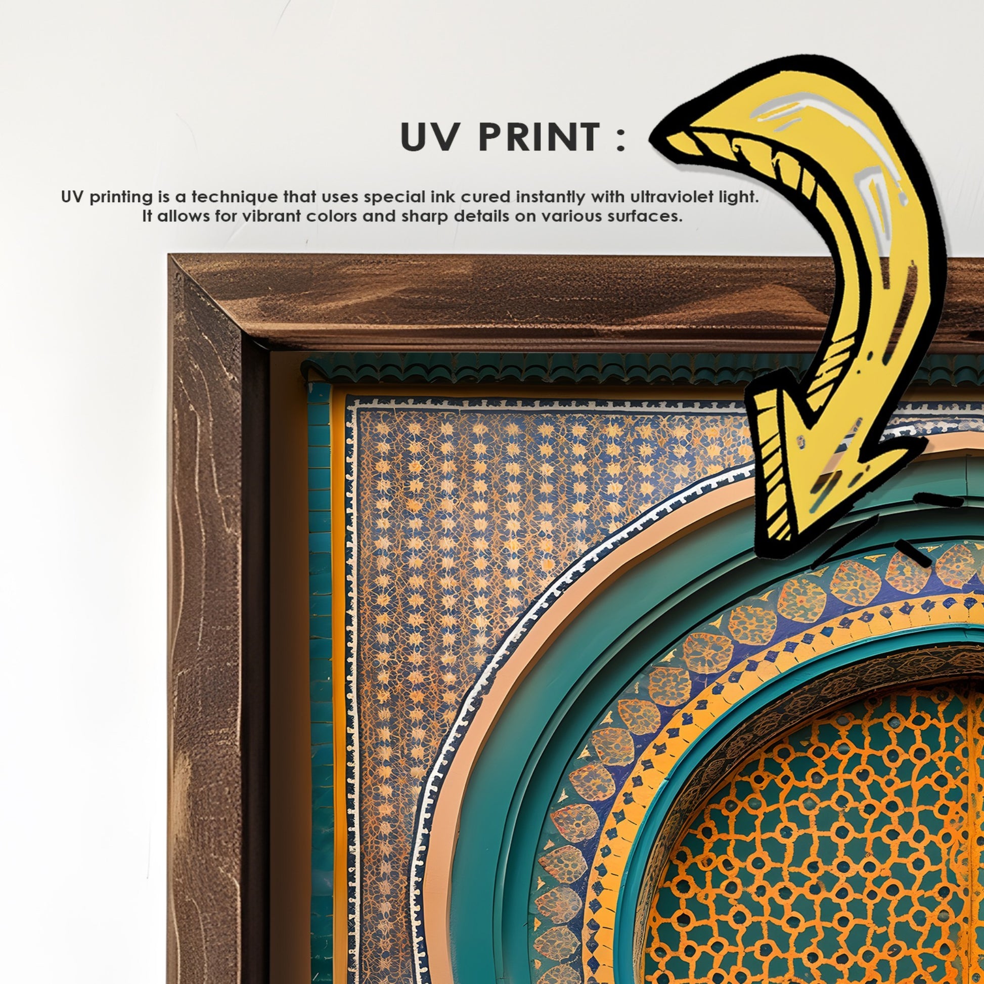 Com o seu design multicolor cativante e acabamentos de qualidade superior, este quadro decorativo adapta-se perfeitamente a salas de estar, quartos, escritórios ou qualquer espaço que necessite de um toque artístico especial. A combinação da impressão UV com a moldura em pinho garante uma peça que mantém a sua beleza ao longo dos anos.