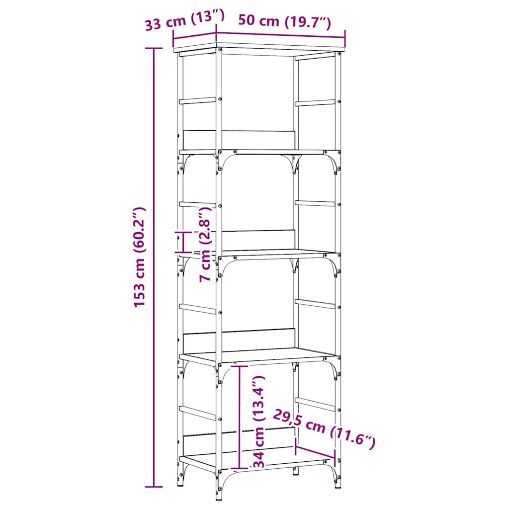 Estante 50x33x153 cm derivados de madeira carvalho artisiano