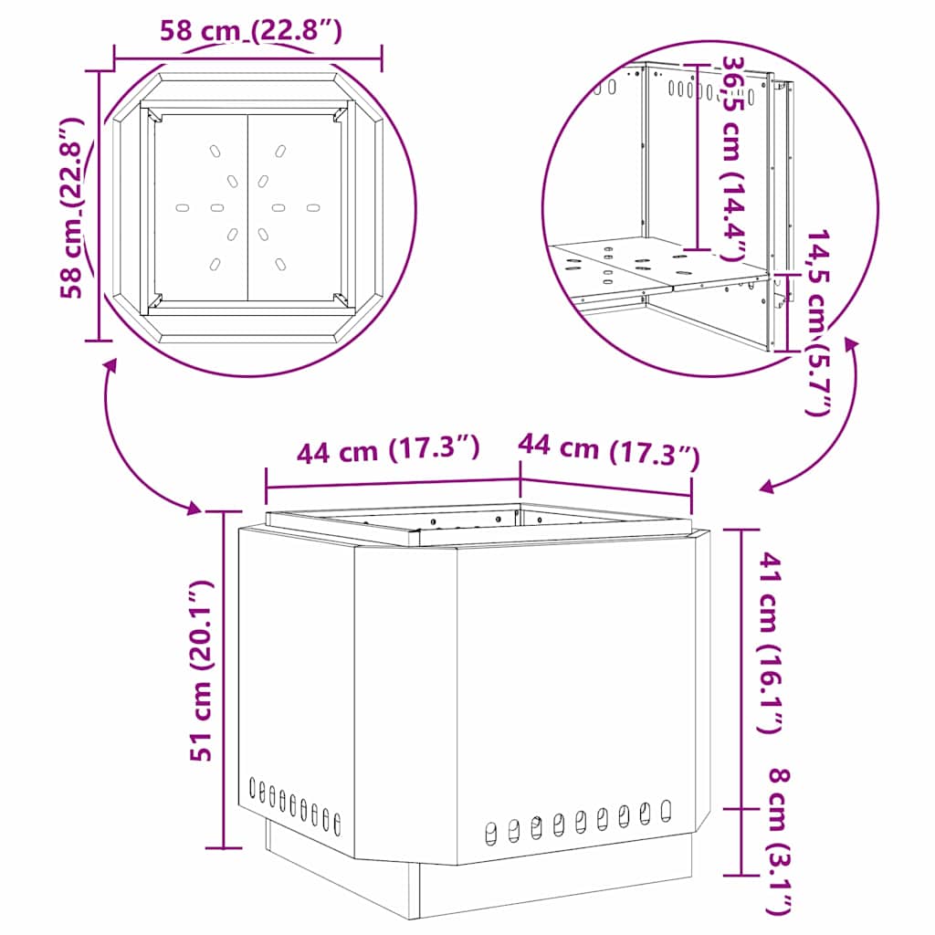 Fogueira Sem Fumaça Preto 58 x 58 x 51 cm Aço laminado a frio
