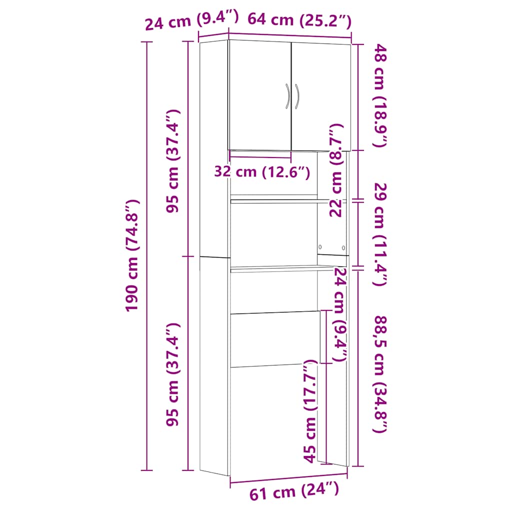 Armário máquina lavar roupa derivados madeira cinzento sonoma