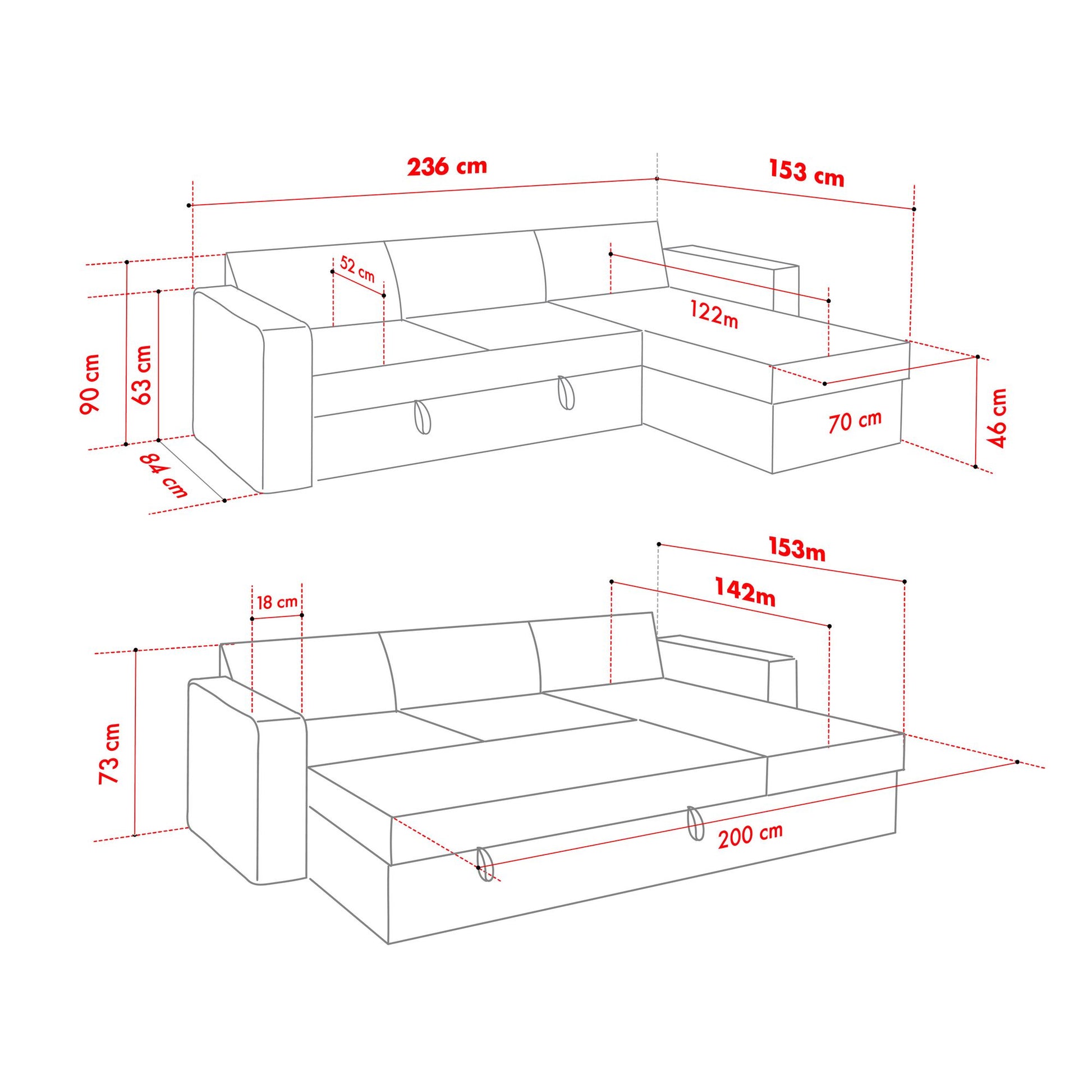 Afunde-se no tecido de linho macio deste sofá, com uma profundidade de assento generosa de 57 cm e um chaise lounge medindo 140 cm. O sofá se converte facilmente em uma cama confortável, medindo 140 cm x 190 cm, perfeito para hóspedes de uma noite ou noites de cinema preguiçosas.