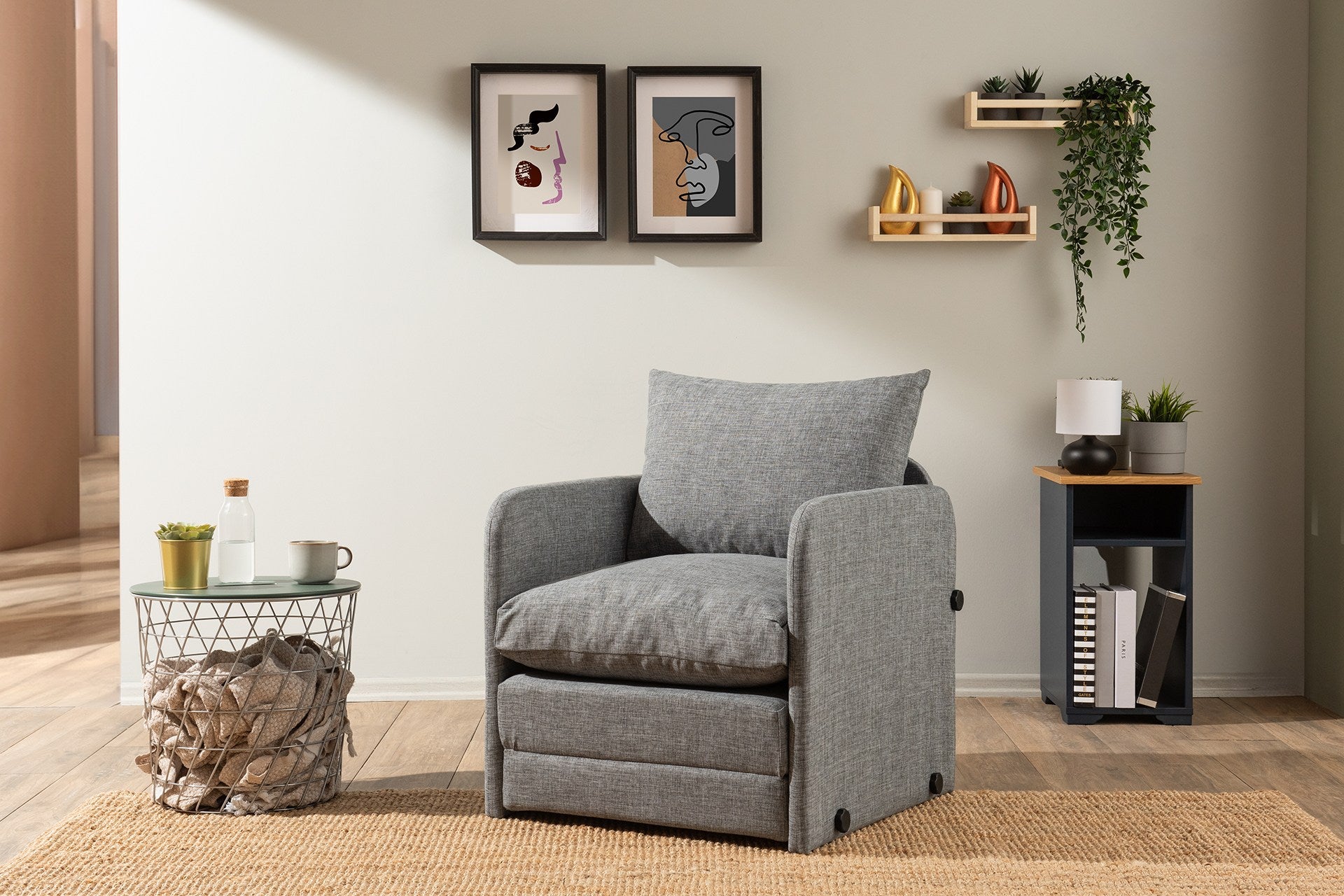 Poltrona-cama de 1 lugar – 68 cm x 70 cm x 66 cm – Cinza claro – Metal e Têxtil