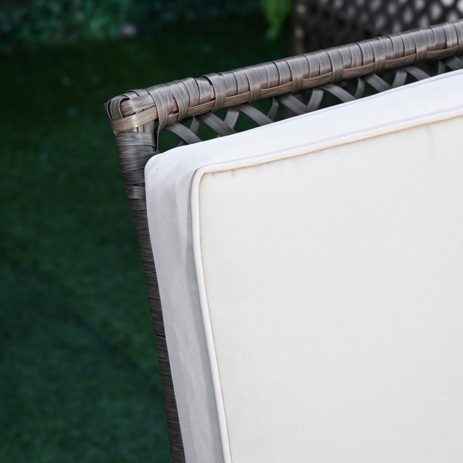 - Materiais: Estrutura de metal, vime PE tecido à mão e almofadas de poliéster