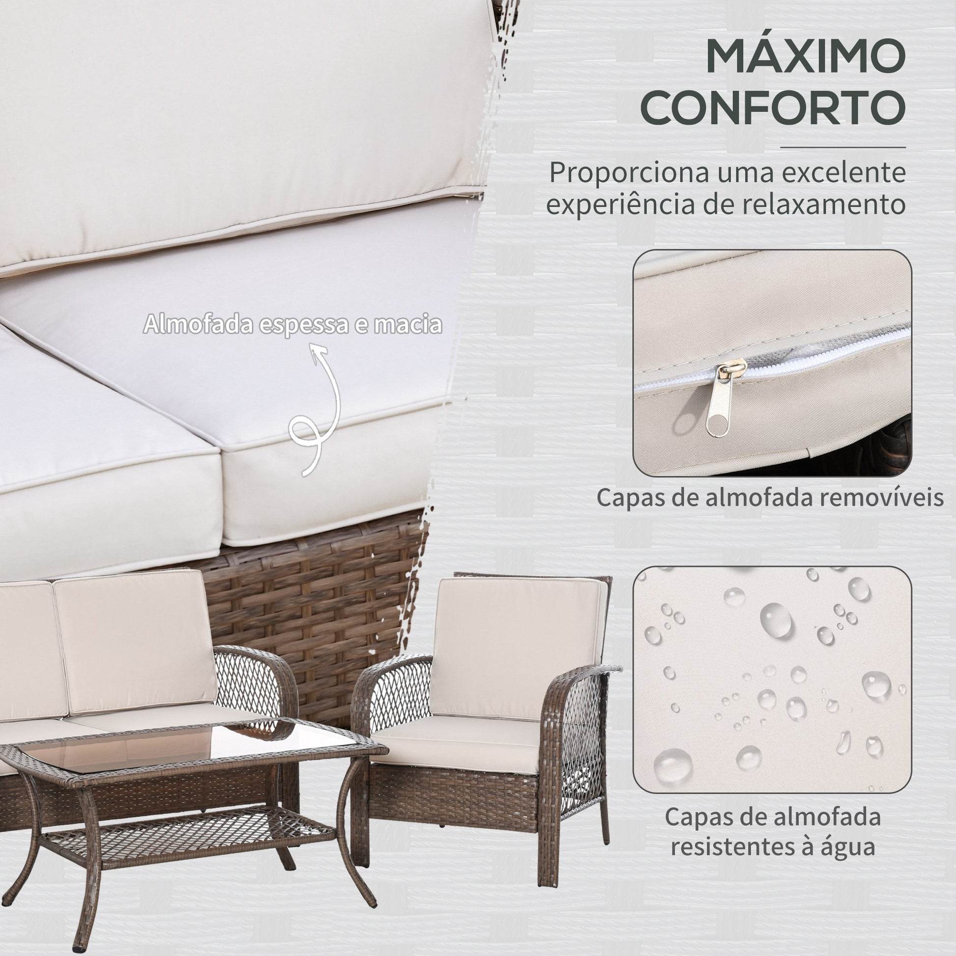 Renove o seu espaço ao ar livre com este elegante conjunto de móveis de jardim de vime PE em marrom. Composto por 2 poltronas individuais, um sofá duplo e uma mesa de centro, este conjunto é perfeito para desfrutar de momentos relaxantes no seu jardim, varanda ou pátio.