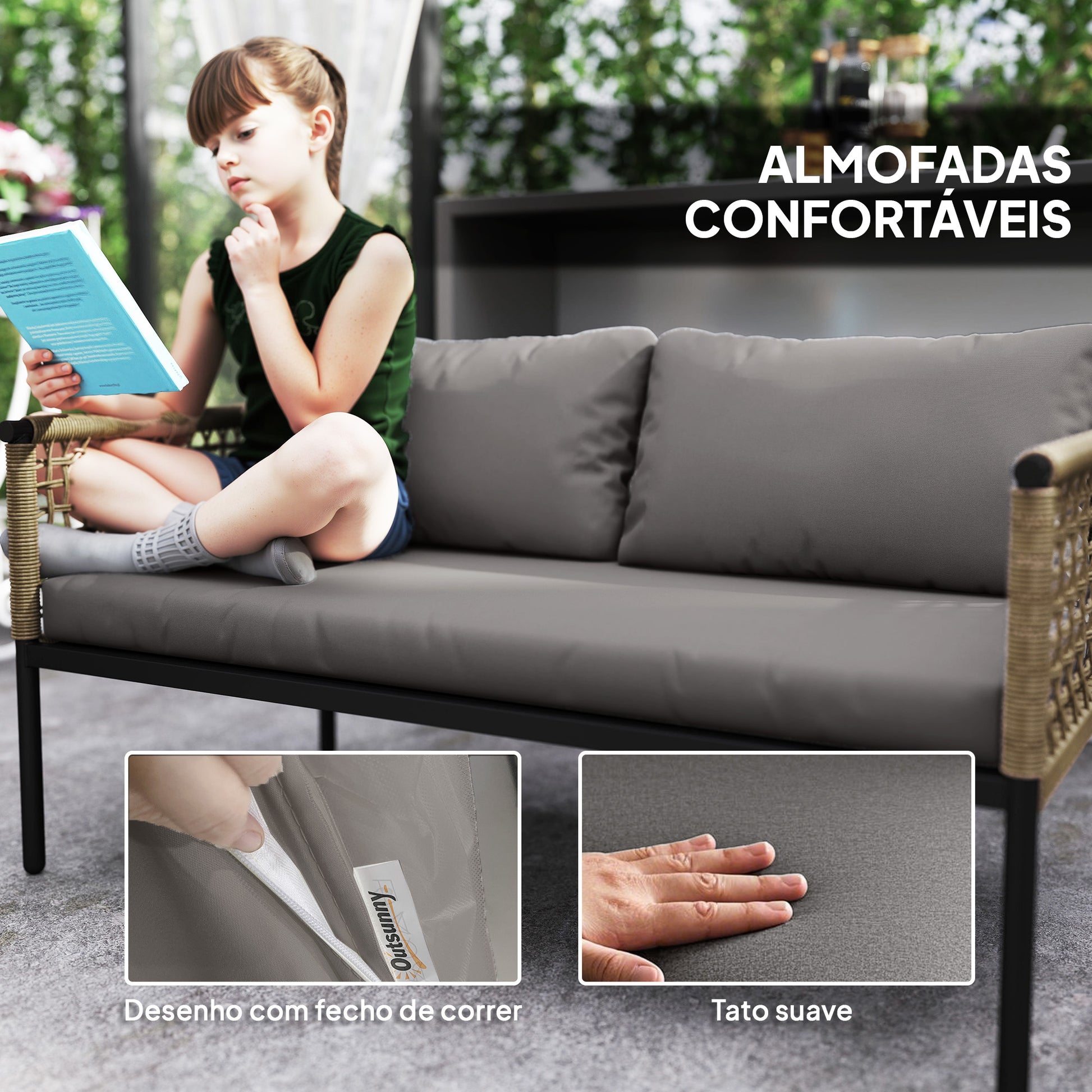 Conjunto de Jardim de Vime Sintético Cinzento 4 Peças - Medidas 126x66x70 cm