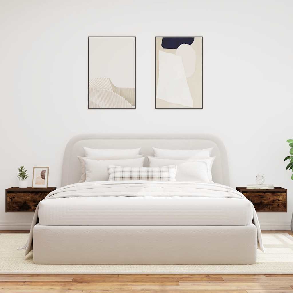 Mesas de cabeceira de parede com luzes LED 2pcs carvalho fumado
