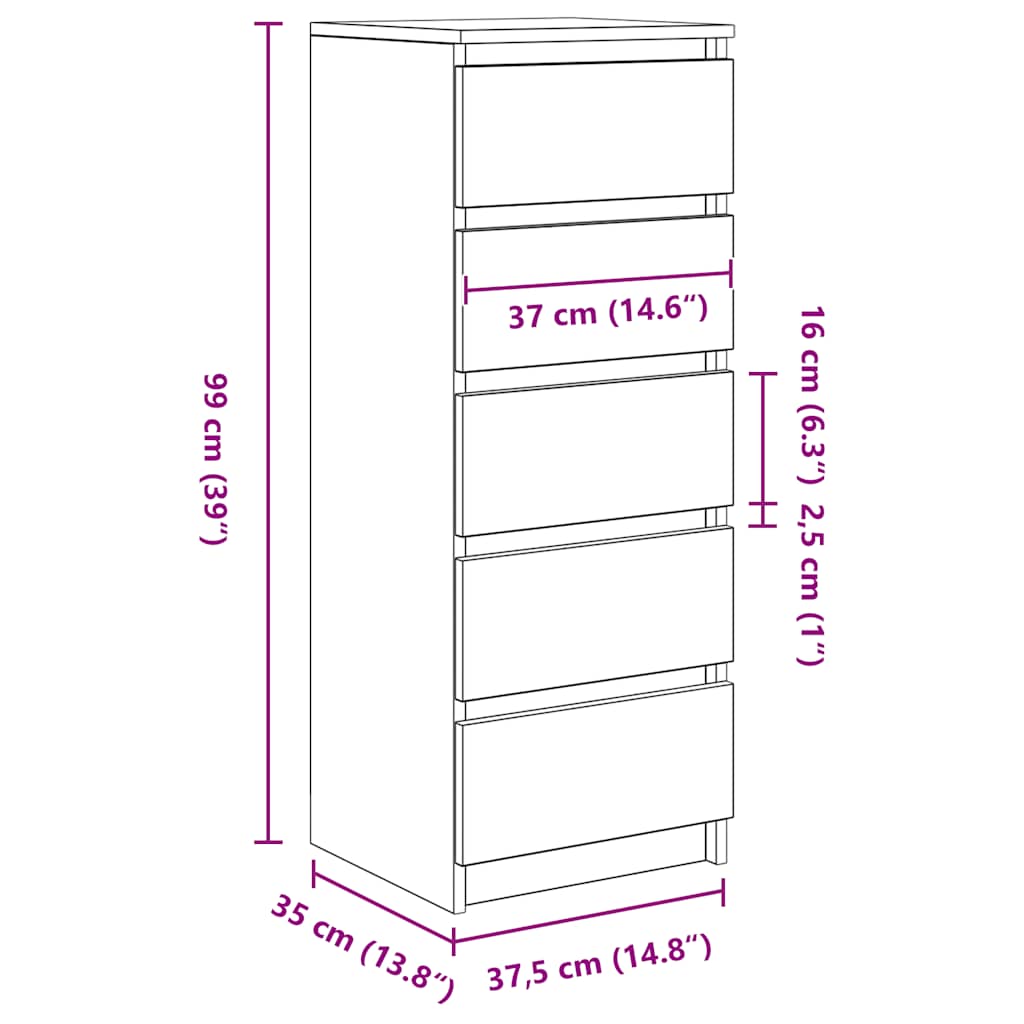 - Quantidade de gavetas: 5
