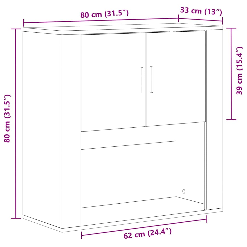 Armário de Parede com prateleira Carvalho preto 80 x 33 x 80 cm