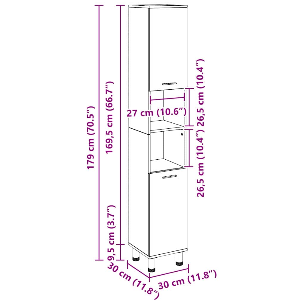 Armário de Banheiro com porta Carvalho Preto 30 x 30 x 179 cm