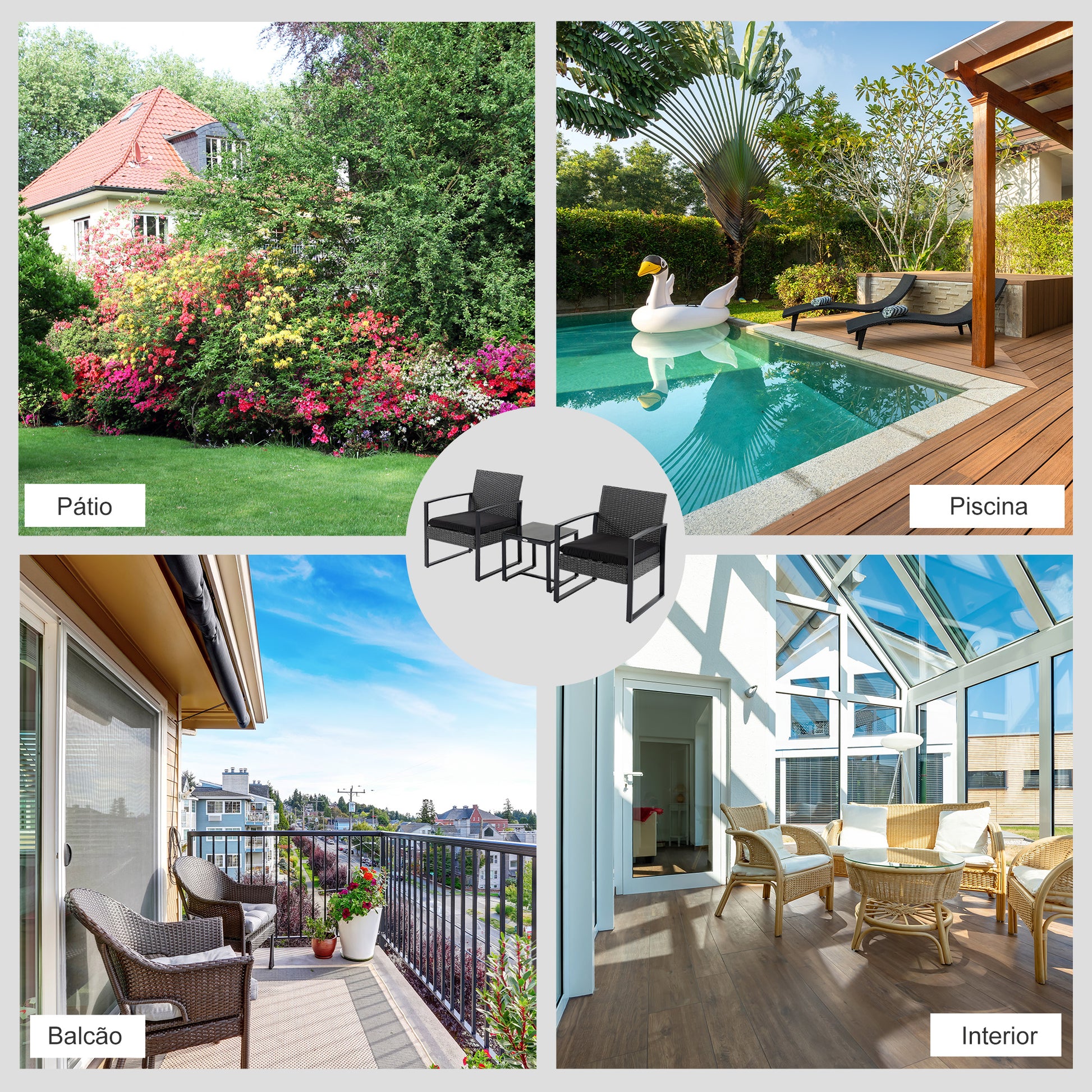- Benefícios: Resistente às intempéries, fácil de limpar, almofadas removíveis para maior conforto