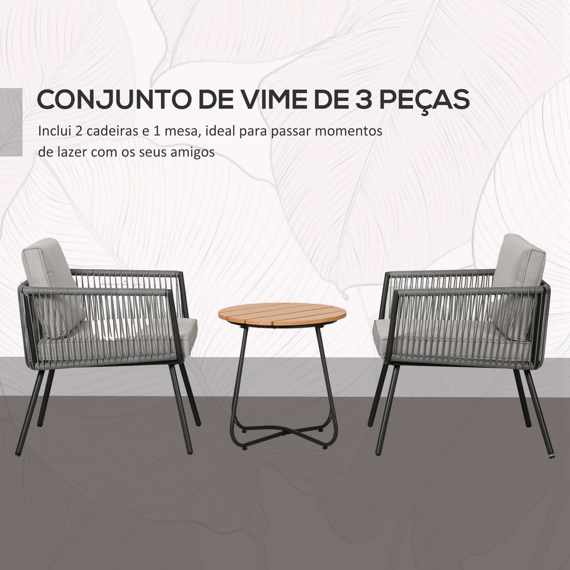 Conjunto de Móveis de Jardim 3 Peças Cinzento 61x64x64 cm - Poltronas e Mesa