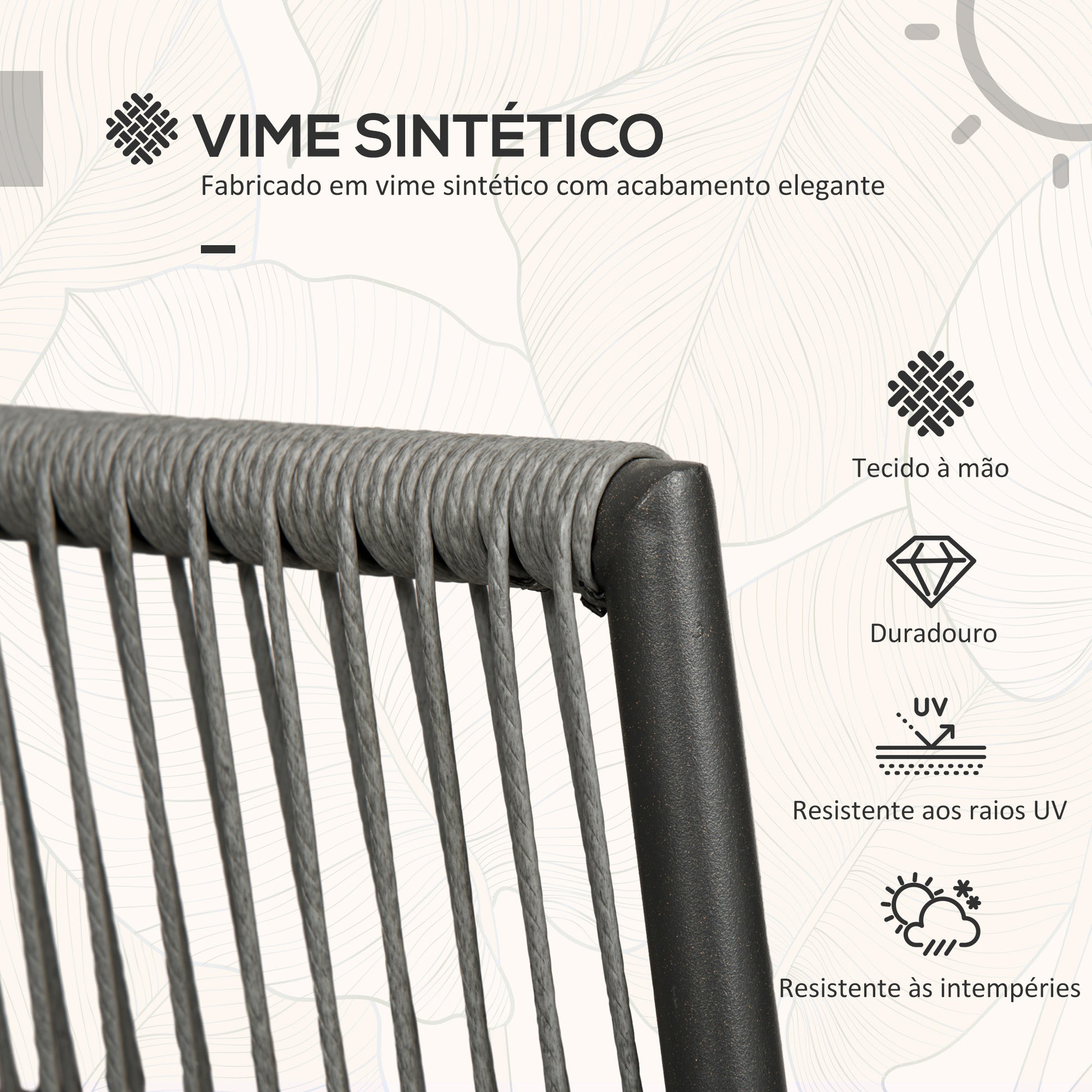 - Materiais: Estrutura metálica revestida a pó, vime PE e almofadas acolchoadas