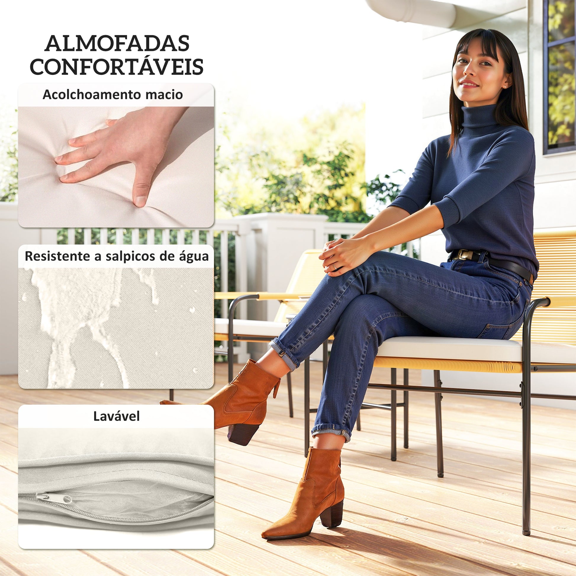 - Outras especificações: Fácil montagem, almofadas com capas laváveis