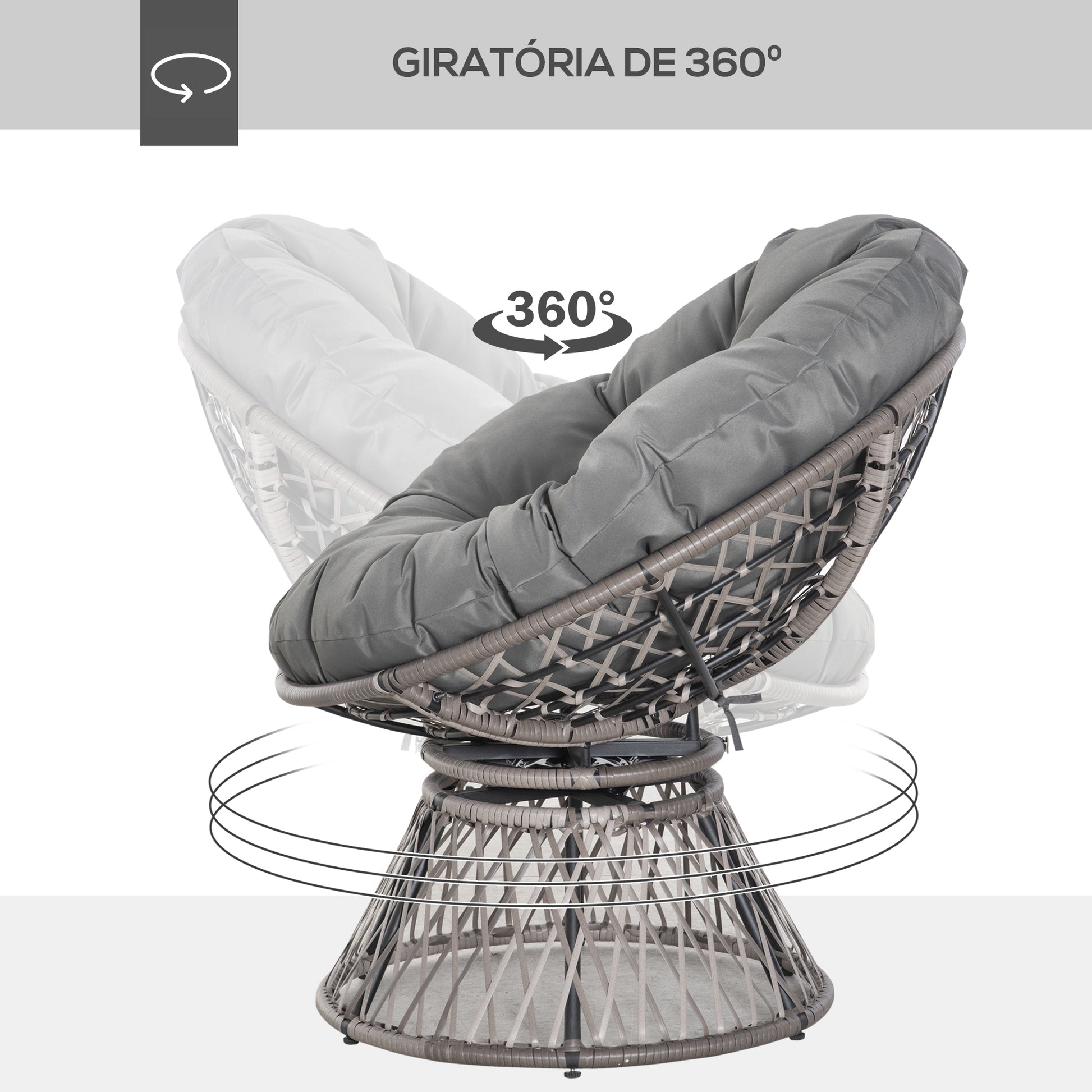Poltrona Papasan Giratória de Vime Sintético Cinza 87x97x90 cm
