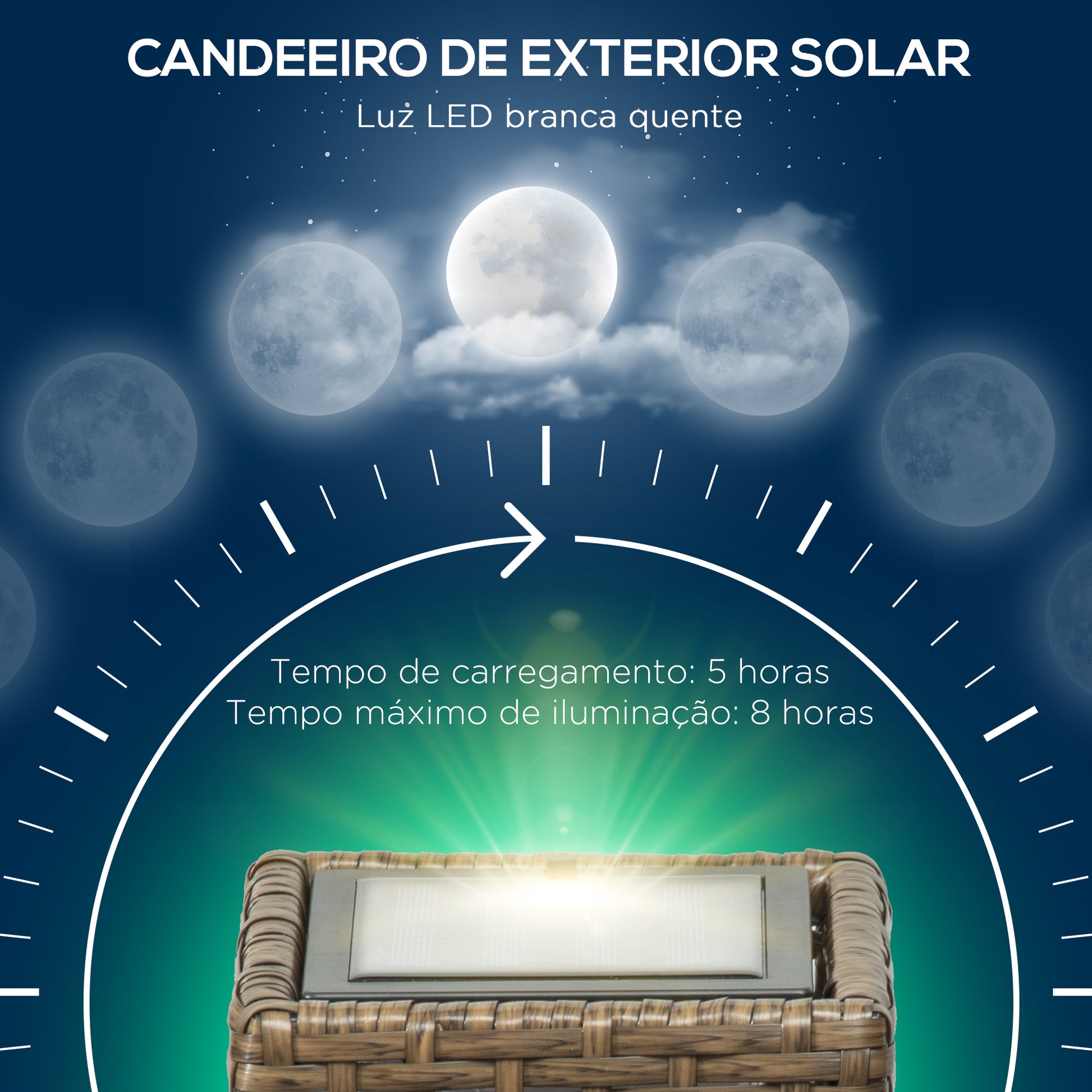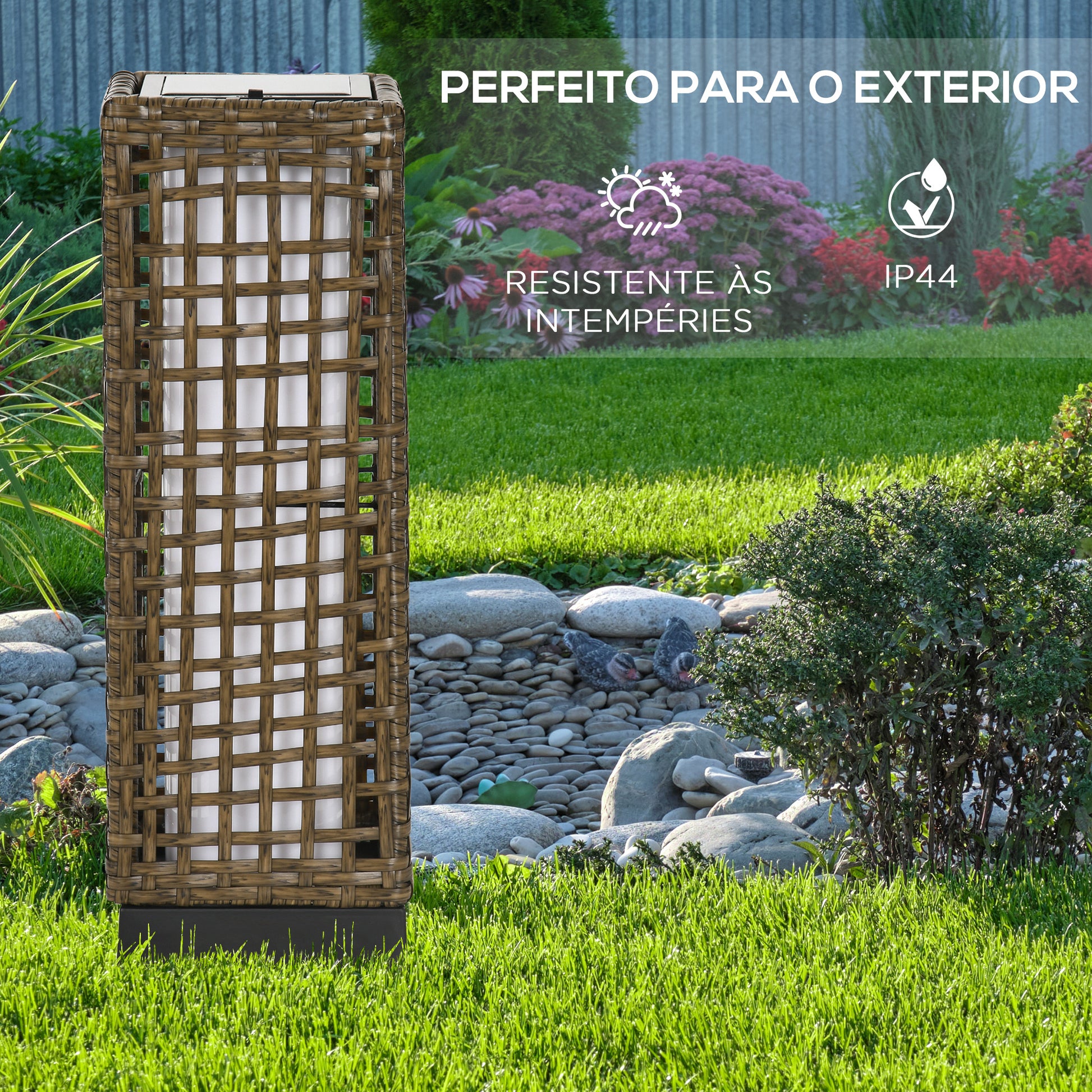 Candeeiro Solar para Exterior em Vime Sintético Marrom Areia 15,5x15,5x46cm