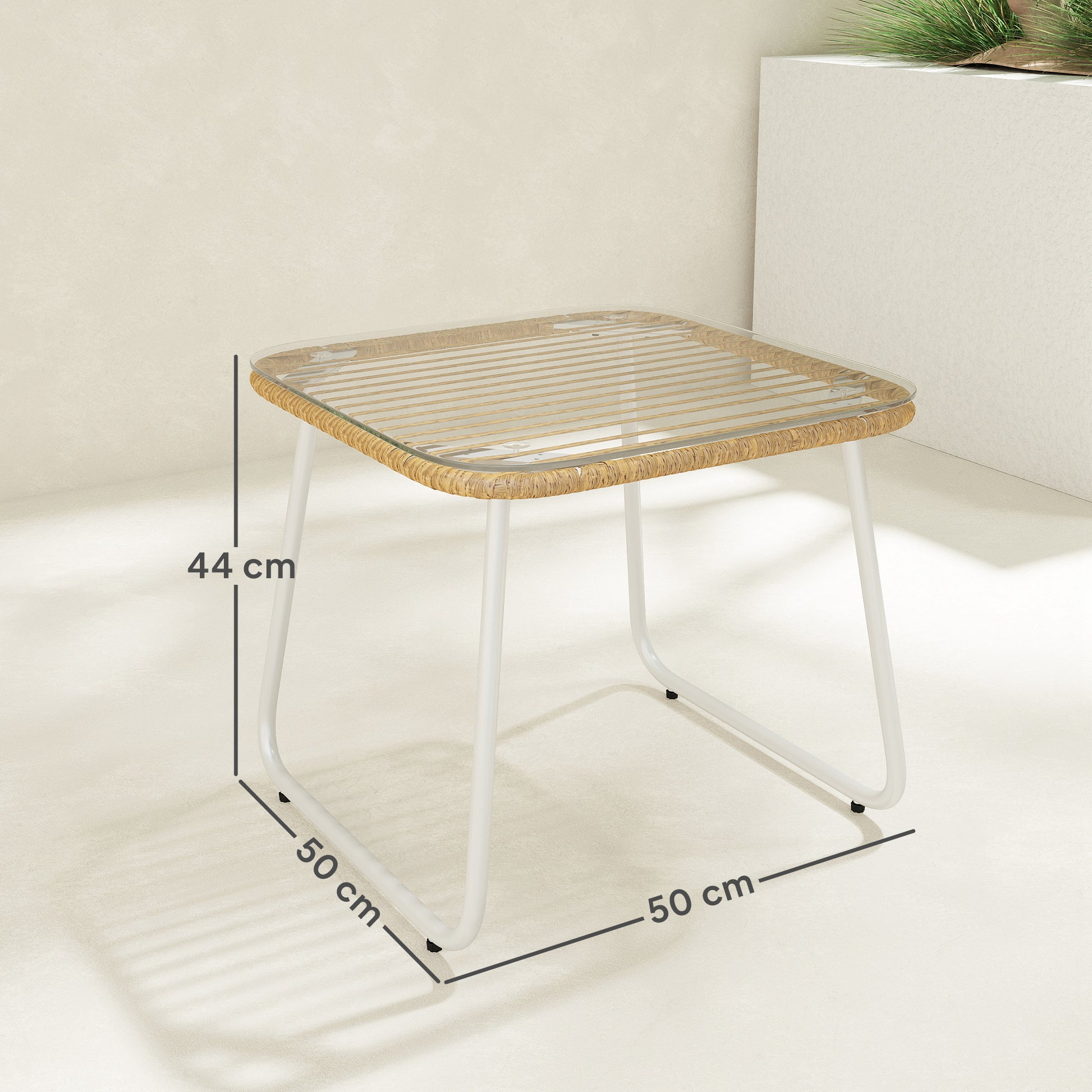 Mesa de Jardim Vime Sintético 50x50x44 cm - Madeira e Branco