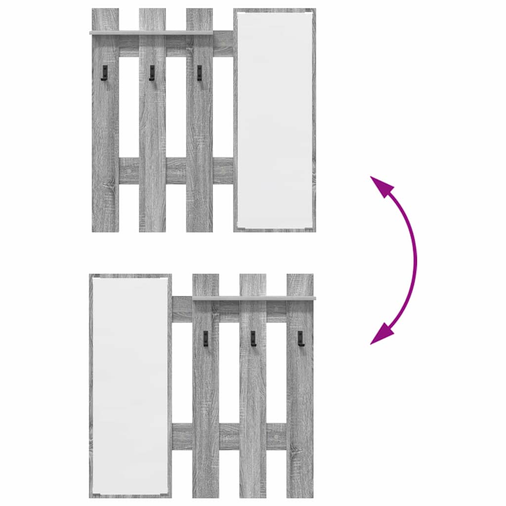 Cabideiro de Parede com espelho Cinza sonoma 100 x 10 x 100 cm