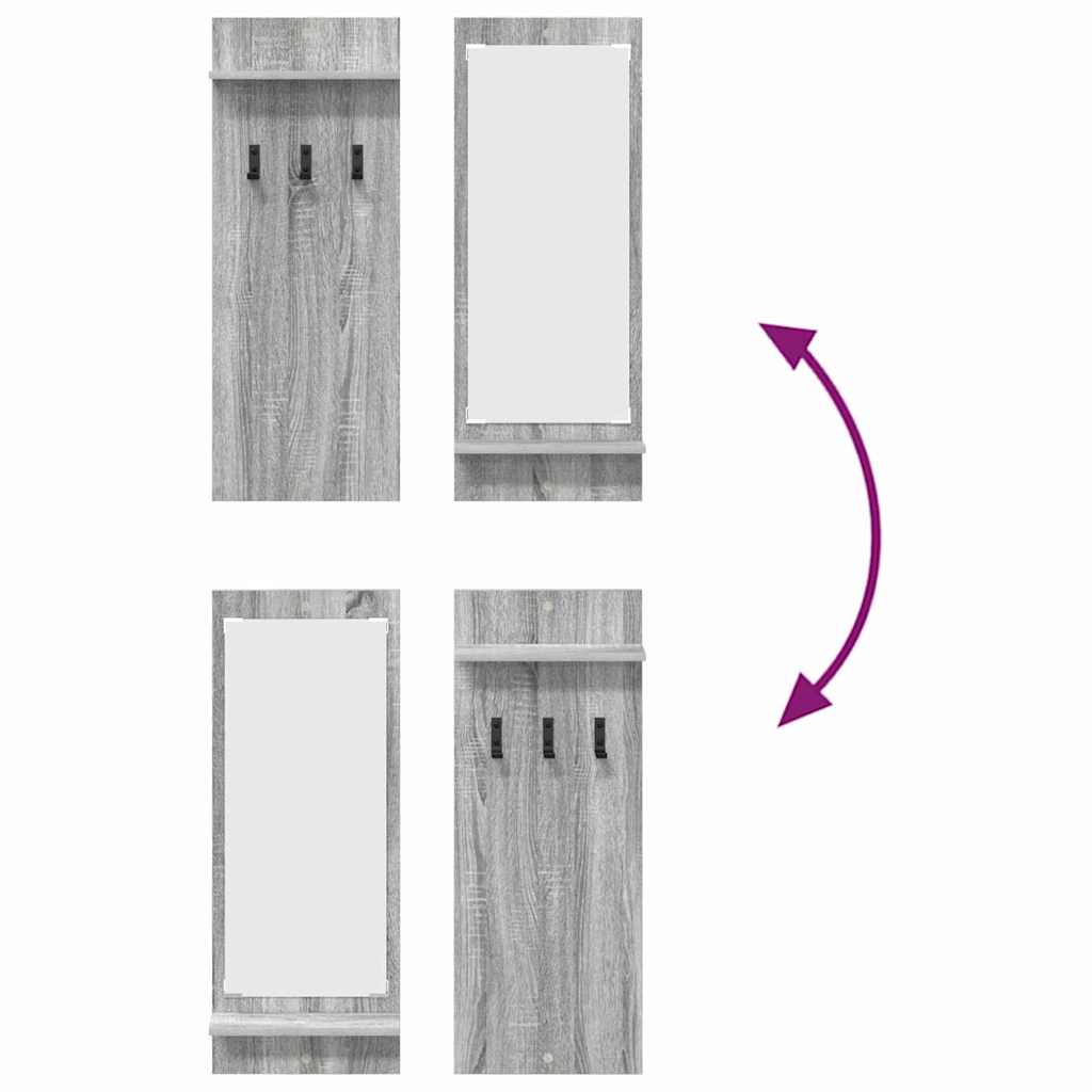 Cabideiro de Parede com espelho Sonoma cinzento 70 x 10 x 90 cm