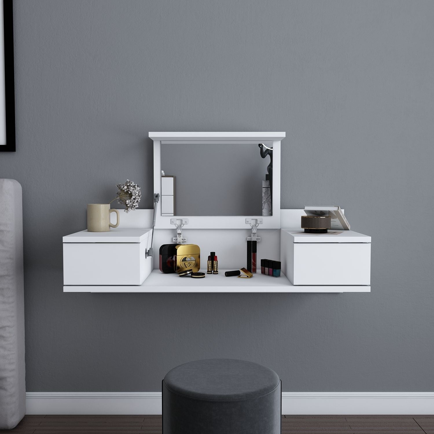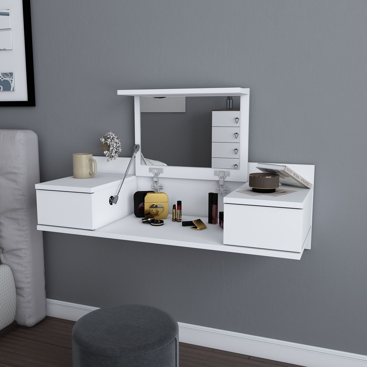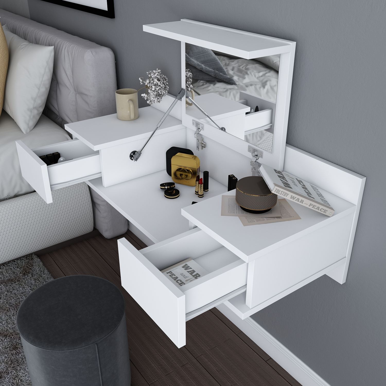 Transforme sua rotina matinal com nossa deslumbrante mesa de maquiagem. Esta peça de mobiliário elegante não apenas realçará a aparência do seu quarto, mas também tornará o processo de se arrumar muito mais fácil. O design elegante e a cor branca adicionarão um toque de sofisticação a qualquer ambiente, enquanto o painel de partículas revestido em melamina 100% garante durabilidade e longevidade.