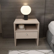 Com seu design elegante e cor bege, este criado-mudo complementa facilmente qualquer decoração de quarto. A combinação perfeita de estilo e funcionalidade, ele possui uma superfície superior espaçosa para sua lâmpada, livros e outros itens essenciais, enquanto a prateleira aberta e a gaveta oferecem amplo espaço de armazenamento para suas necessidades noturnas.