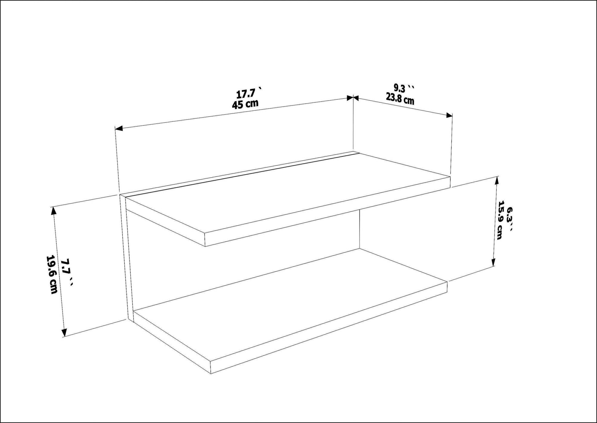 Feita de 100% de aglomerado revestido de melamina, esta mesa de cabeceira é construída para durar. A espessura de 18mm garante solidez e estabilidade, enquanto as medidas precisas de 45cm de largura, 19.6cm de altura e 23.8cm de profundidade a tornam o tamanho perfeito para seus itens essenciais de cabeceira.