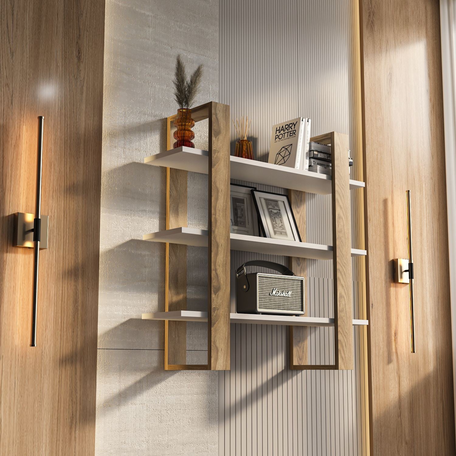 Prateleira de Parede – 90cm x 90cm x 22cm – Carvalho Oud e Branco – MDF Revestido de Melamina
