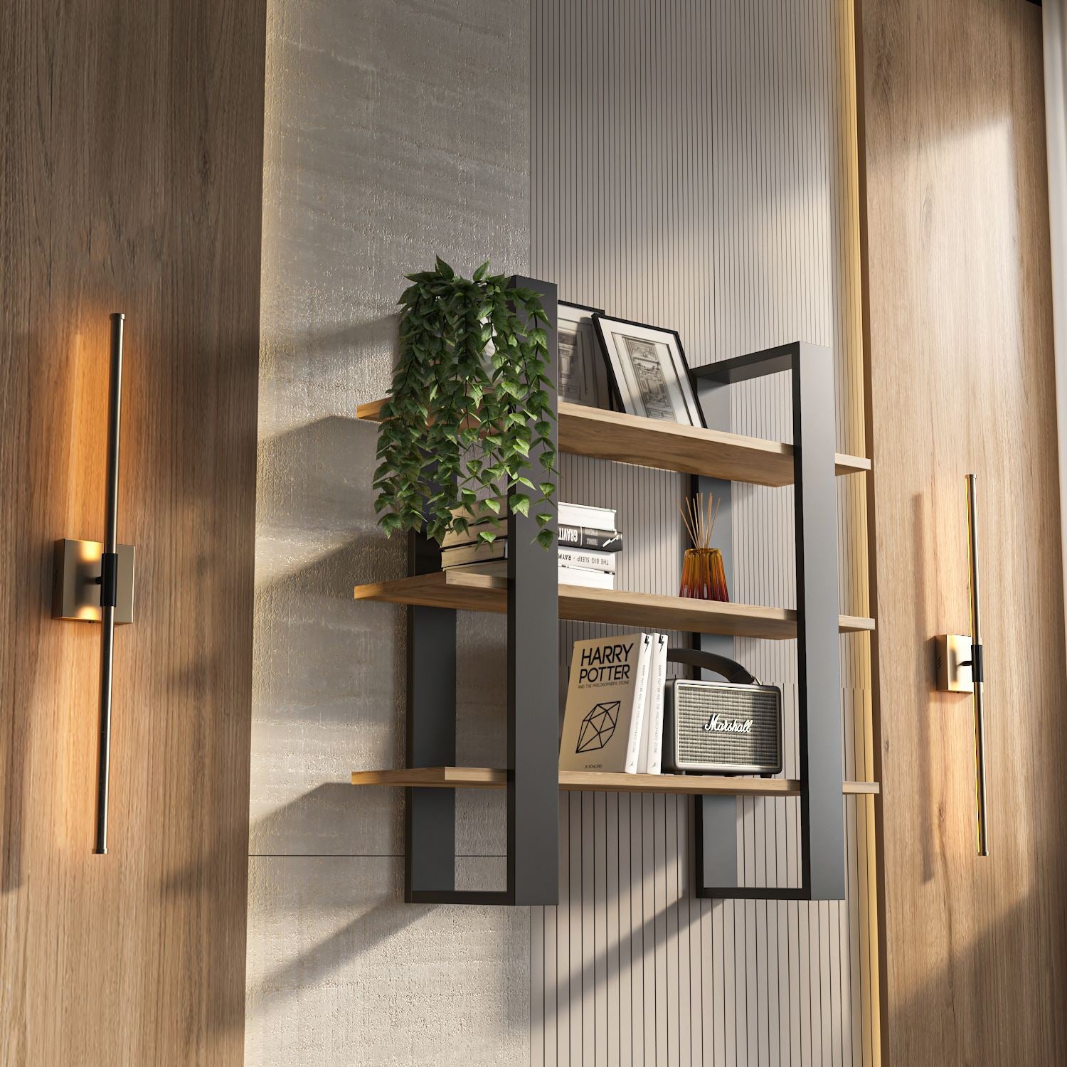 Transforme seu espaço de vida com nossa deslumbrante prateleira de parede, feita de 100% de MDF revestido de melamina para durabilidade e estilo. O design elegante e a combinação moderna de cores Preto e Carvalho Oud irão instantaneamente elevar qualquer ambiente da sua casa.
