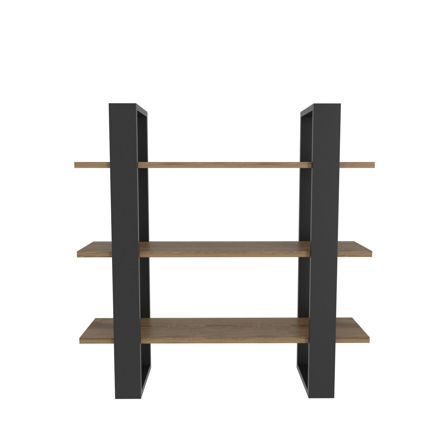 Prateleira de Parede – 90 cm x 90 cm x 22 cm – Preto e Carvalho Oud – MDF Revestido de Melamina