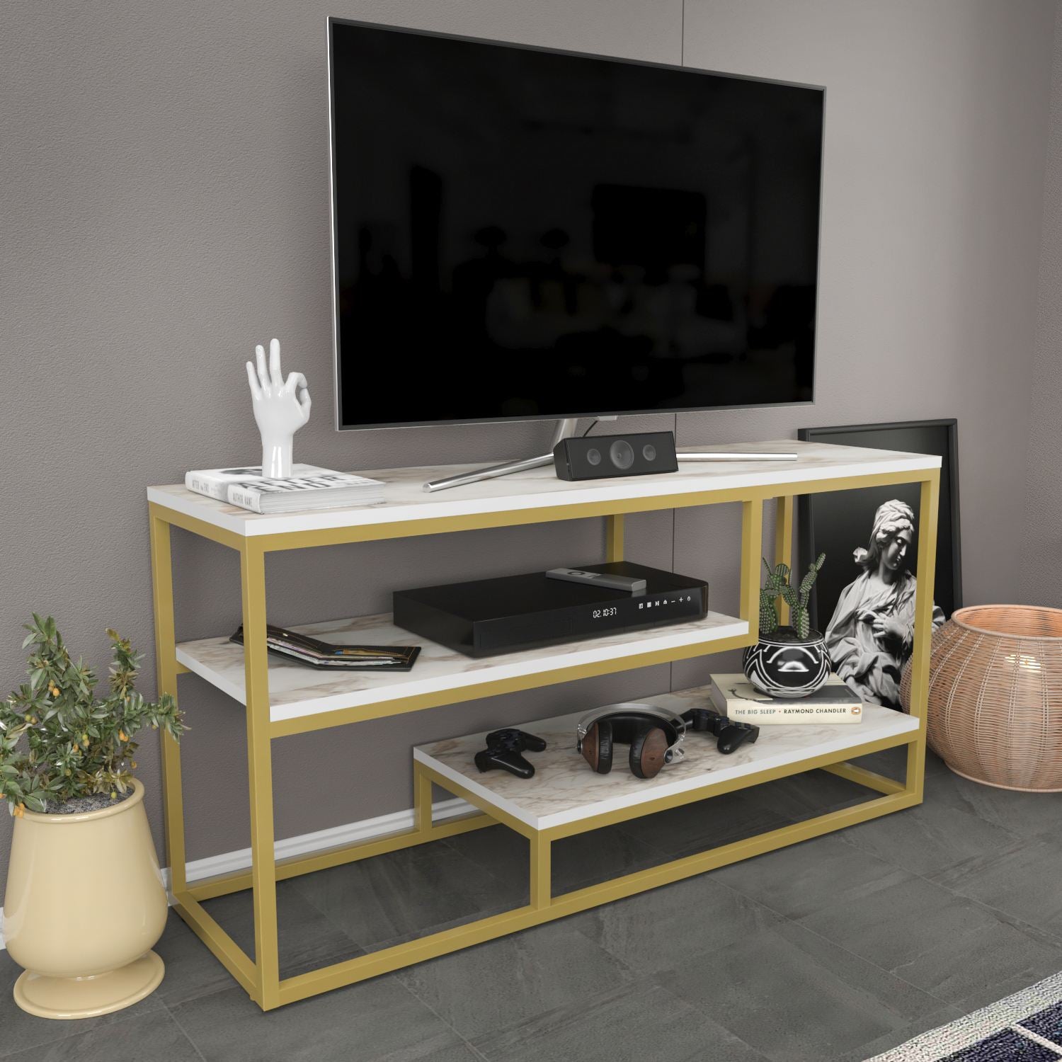 Móvel de TV – 120,2 cm x 60 cm x 35,2 cm – Éfeso e Ouro – MDF