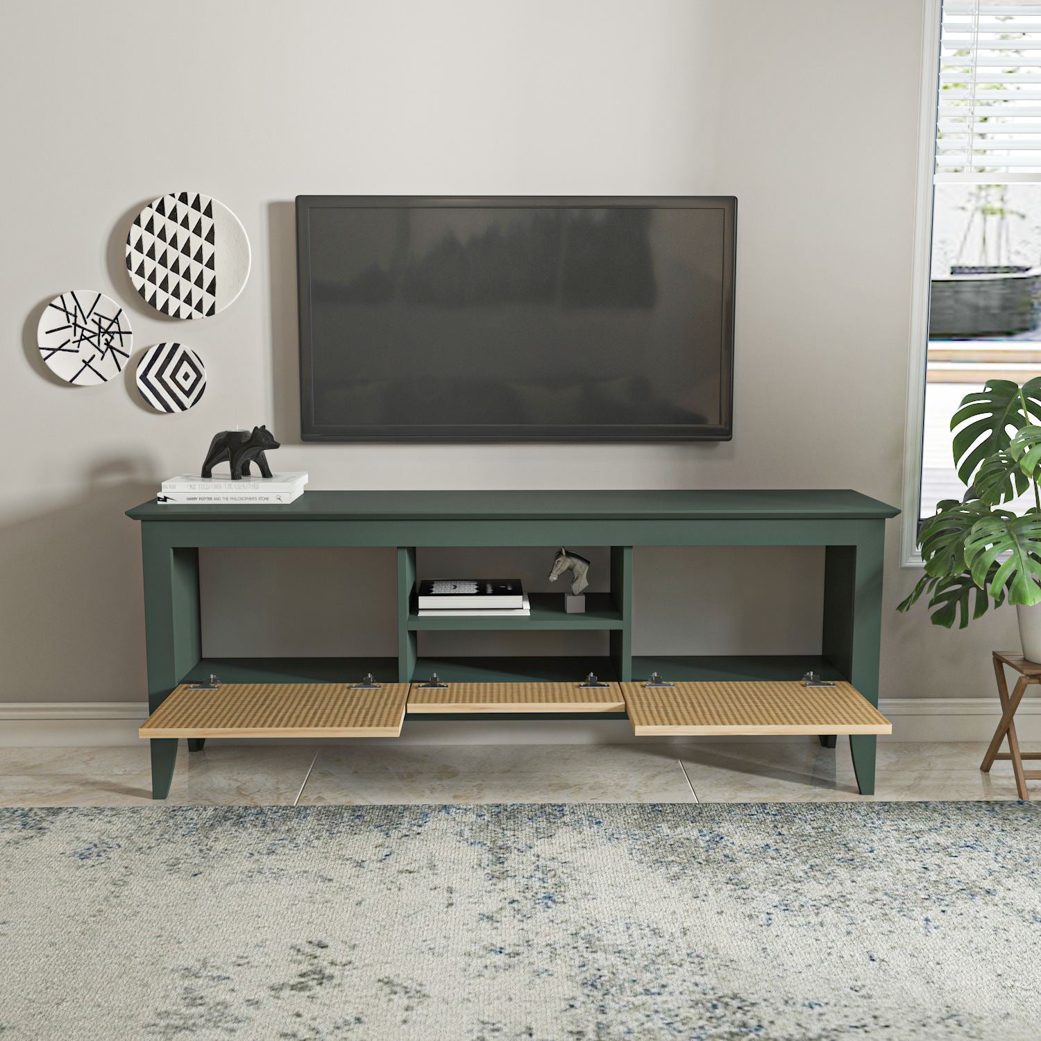 Móvel de TV – 150 cm x 59 cm x 35 cm – Verde e Hazeran – MDF