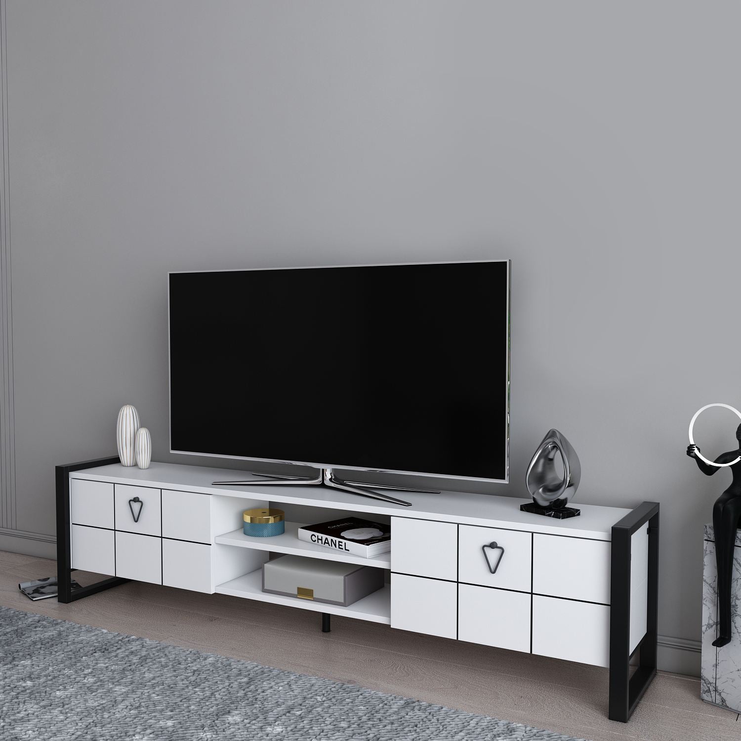 Móvel de TV – 184cm x 45cm x 34cm – Branco e Preto – MDF