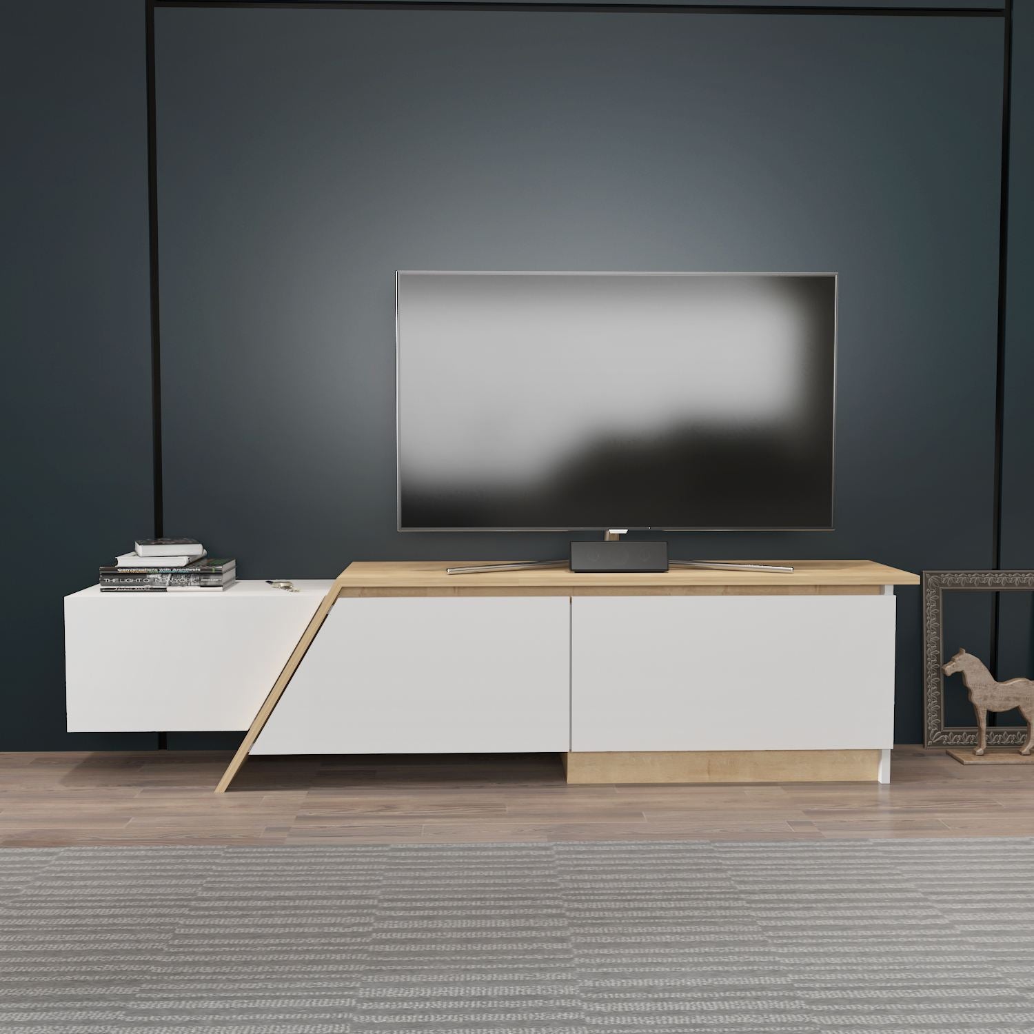 Móvel de TV – 180cm x 28,6cm x 35cm – Branco e Carvalho Safira – Painel de partículas
