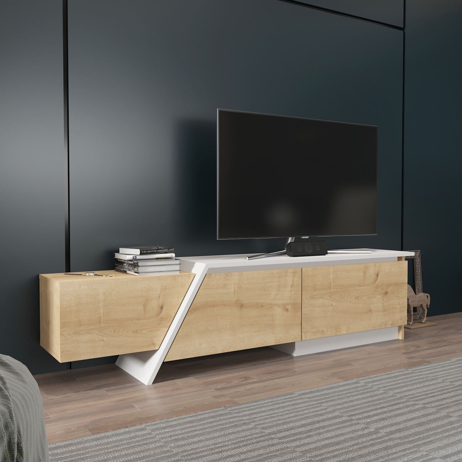 Móvel de TV – 180cm x 28,6cm x 35cm – Carvalho Safira e Branco – MDF