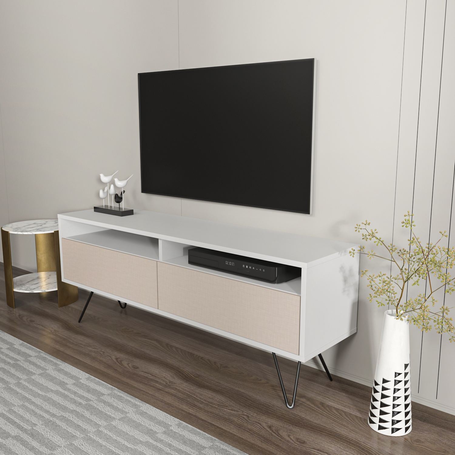 Móvel de TV – 140 cm x 53,2 cm x 35 cm – Branco e Bege – Aglomerado